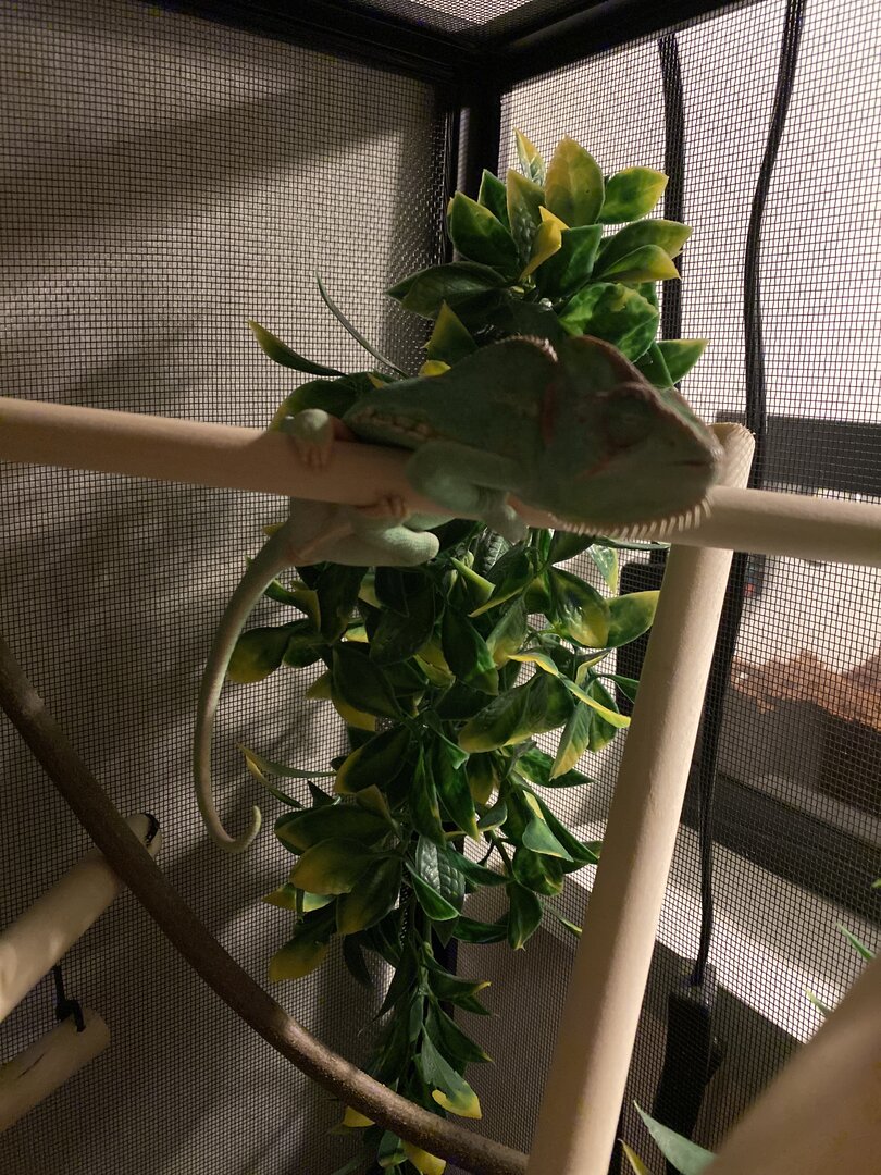 Usually they’ll have their arms and feet tucked in and their tail curled. How many nights has your chameleon slept like that?