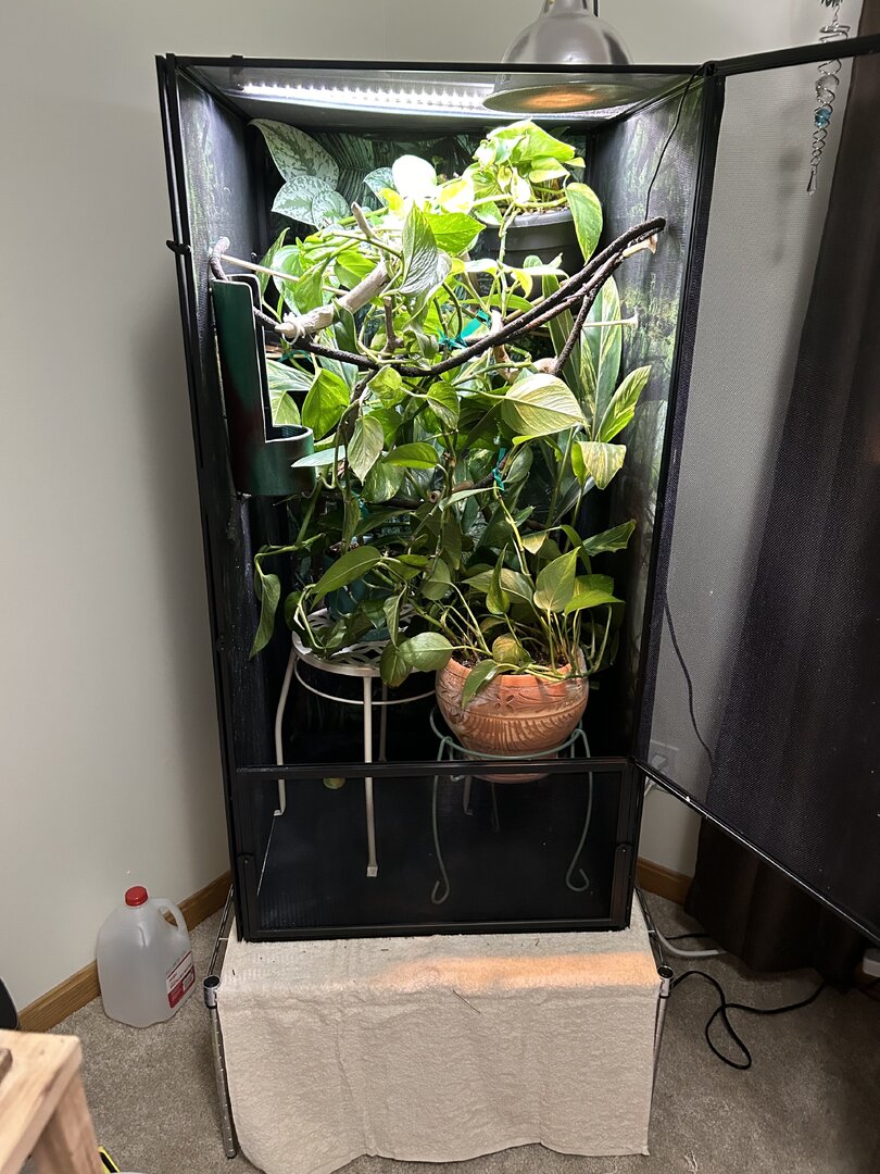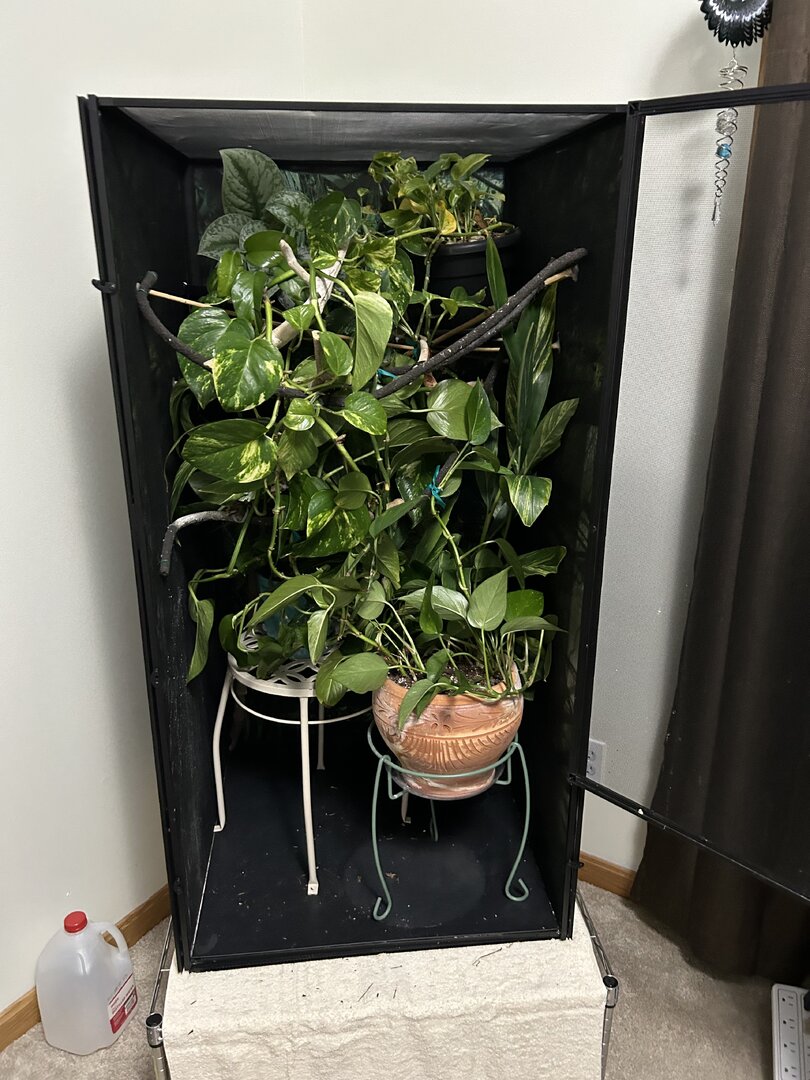 Okay so fig has not been very happy as of late and has had to spend quite a while in a medical tote and every time he is put in the tote he improves significantly his engery is boosted etc but as soon as he goes back in his big cage he starts to have problems again I’ve talked to my vet my husbandry is good etc I just think fig may benefit from a smaller cage he is in a 4x2x2 I just wanted another opinion on reducing his cage size!