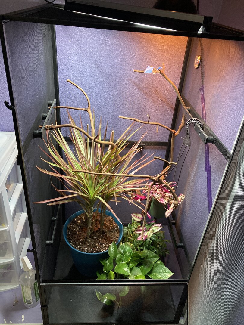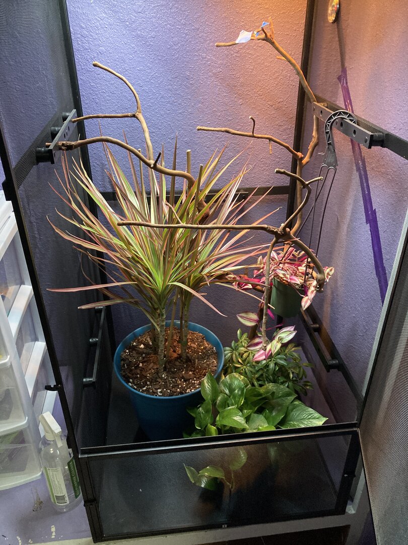 Hello again! Thanks a bunch for all of the answers I received on my previous post, super helpful. I am, however, still a little iffy about plants and their placement inside of the cage. I would also like to provide all of the info I can on all of the supplies I have (i have yet to purchase a veiled cham)