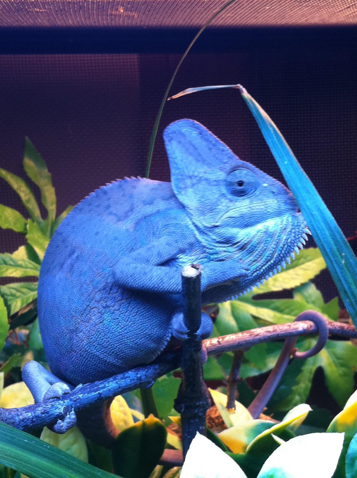 Oh he's lovely! Is that special camera effects or is he really blue in the first photo . Looks very healthy, not a rib in sight, is he friendly, will he come out to you or let you hand feed him yet?