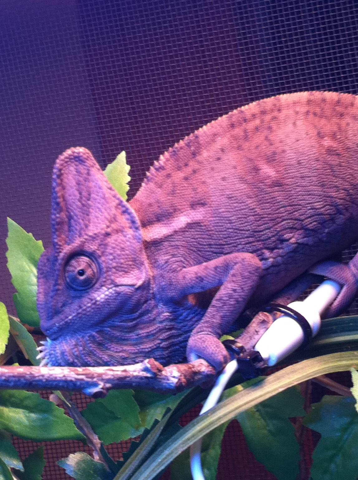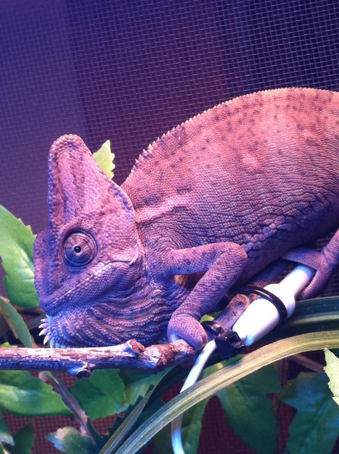 no thats his real colors. not full colors yet, but were patient. he lets me hand feed him, but as soon as i go to get him out he starts his hissing and try's to bite. haha. but, as soon as i get him out he loves it. he's very active, runs around everywhere. he spends most of his time during the day outside in his custom cage with hibiscus tree in it. so far so good.