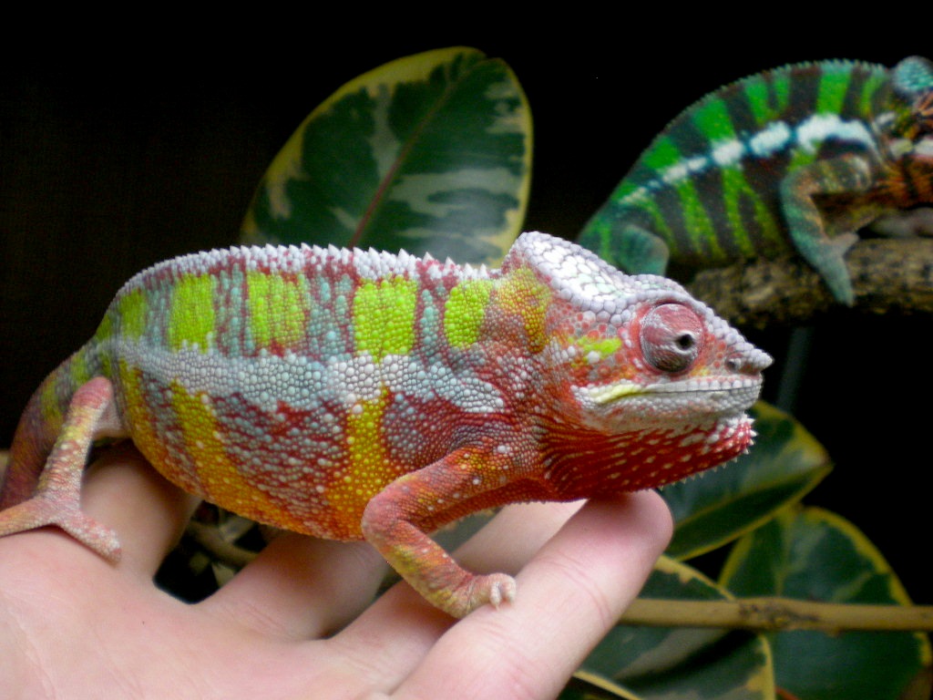 EDIT: Also in regards to the little one from screameleons, The top of his head is still pure white minus one or two very very pale mint green scales in the middle of his head, anyone know if that is normal in a 6 month old ambilobe? Cuz the other guys top of the head is green and all my other panthers have normal colors up there. I hope he isn't getting grey scales already!