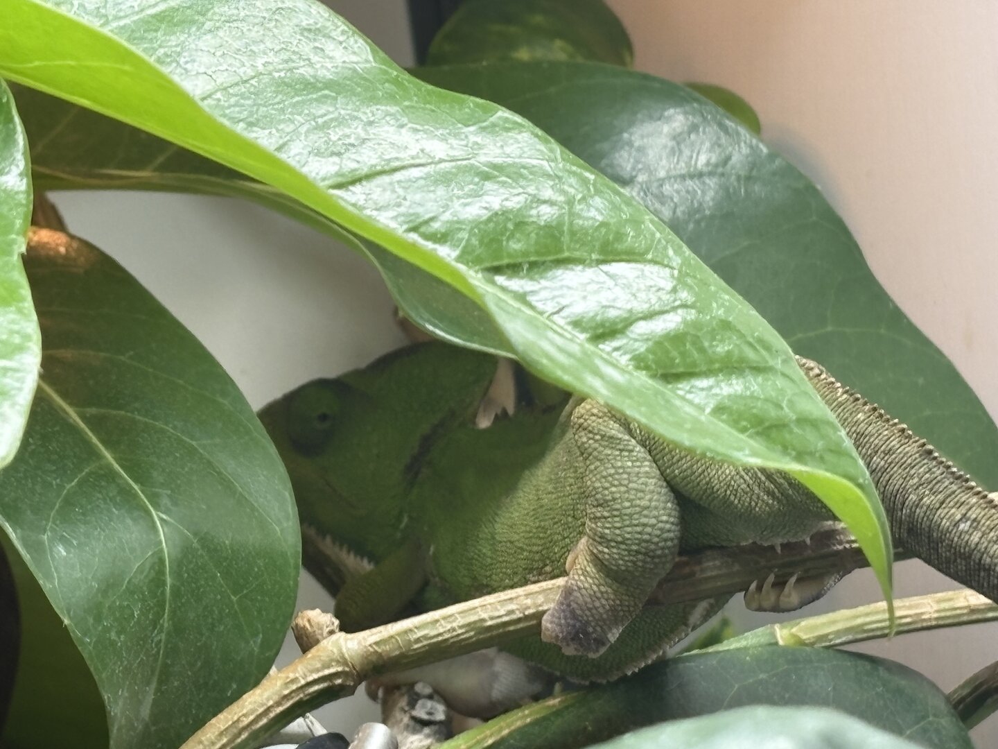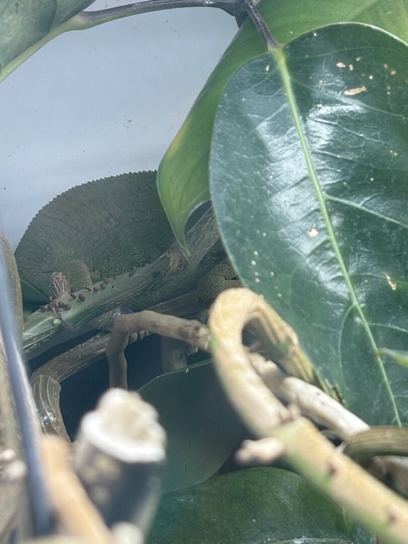 Does anyone know how to tell if their chameleon may have aspirated. I won’t lie that I’m rather scared that I messed up the medication. I did what I’ve done in the past and aimed it for the back of her throat, but I did have a point where a little to much came out. Now she is sitting like this in her enclosure