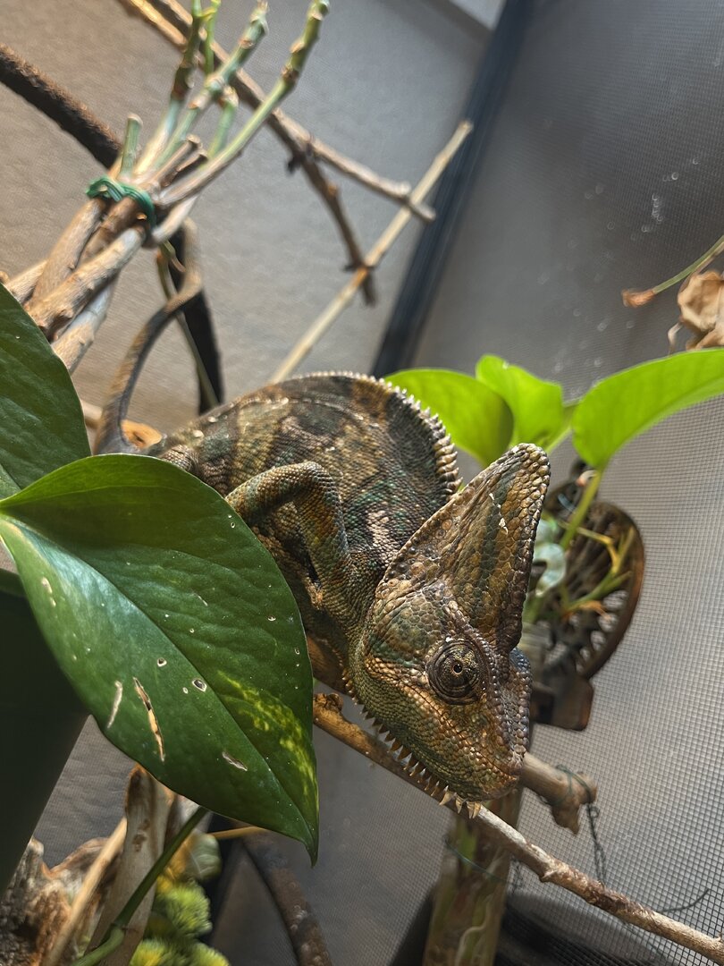 We have been working with Spike more over the last few months and he has come to trust us much more!!! Donāt get me wrong he is still a nervous guy, but routinely everyday he comes lower in in his enclosure , saying hello I wanna come out!! He usually comes onto my arm for about a minute, and I get nervous cause he crawls up and I feel like he doesnāt have a good grip. So he usually goes back into his home and repeats the process