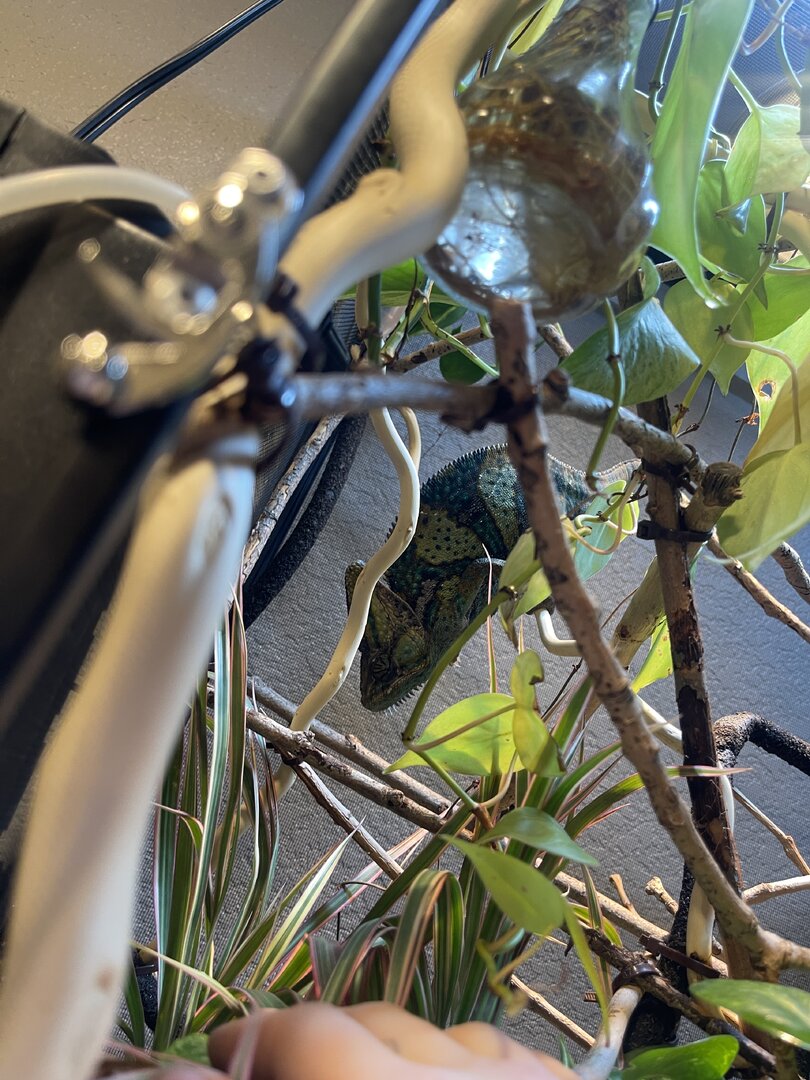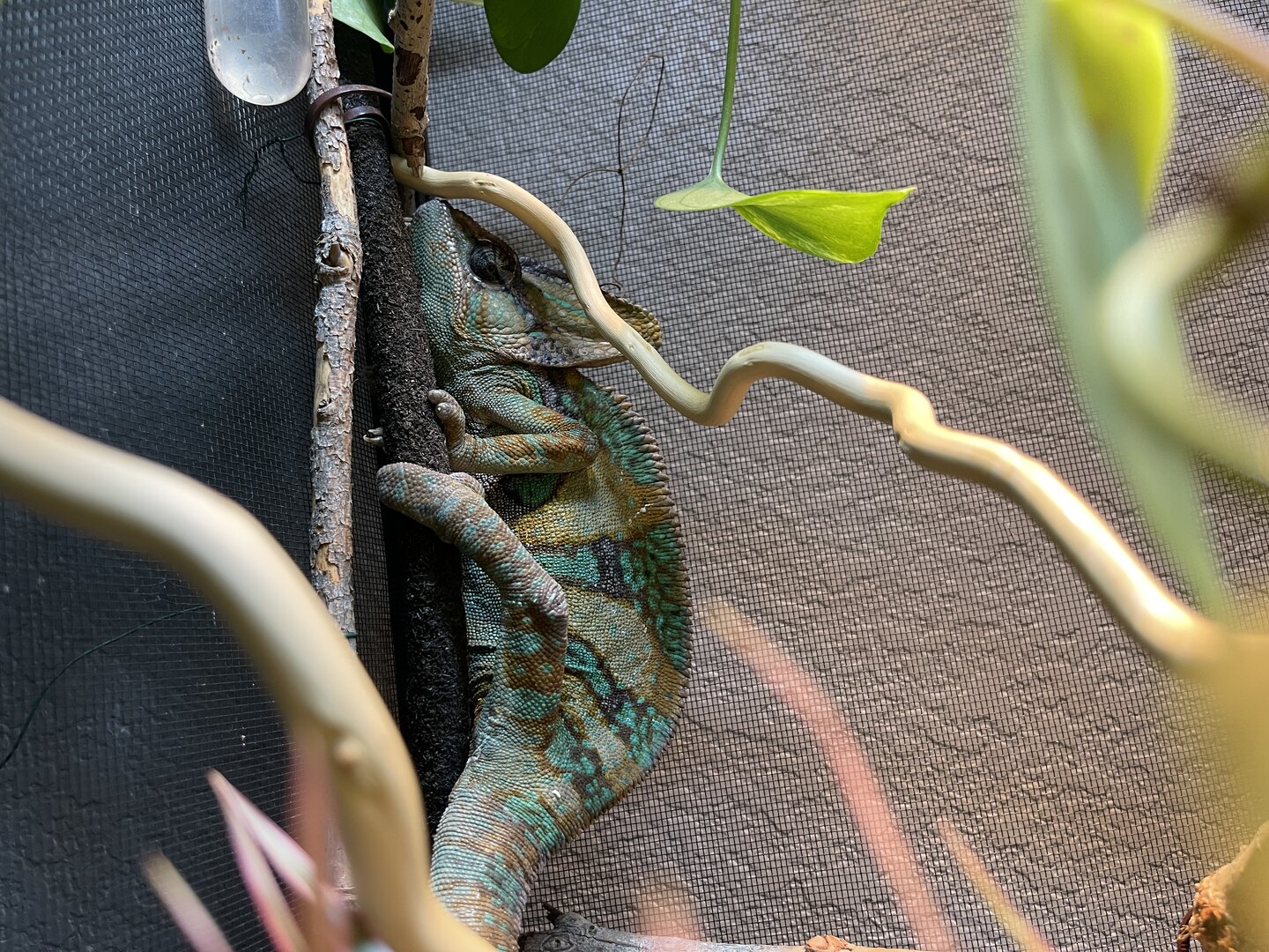 tonight he got some new plants and sticks in his home!