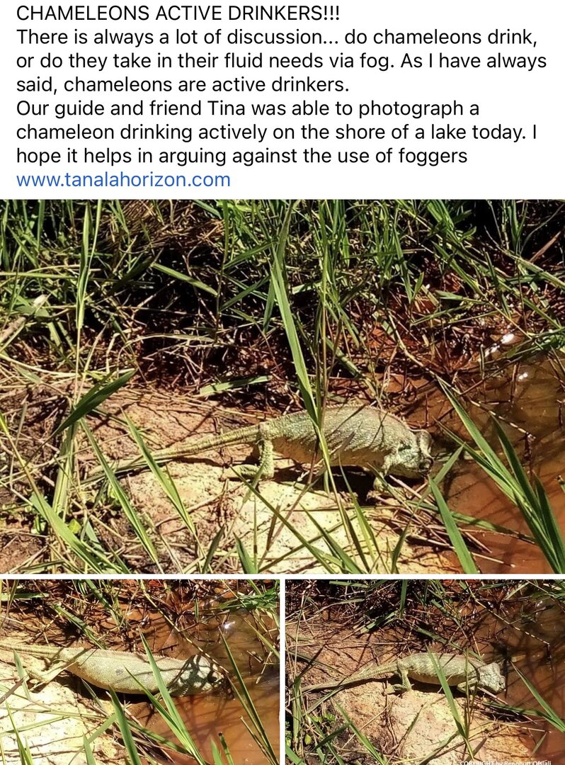 For what it's worth, I fog a lot for larger chameleon species (C. osh, C. parsonii cristifer) with success. But for the little ones it hasn't been as useful. So I'm not advocating for not fogging, just that we examine this closely. Perhaps larger species are just able to deal with a margin of error from commercial setups easier than smaller ones, and thus reap more of the benefits of hydrating through fog in captivity.