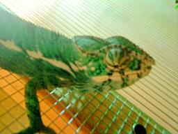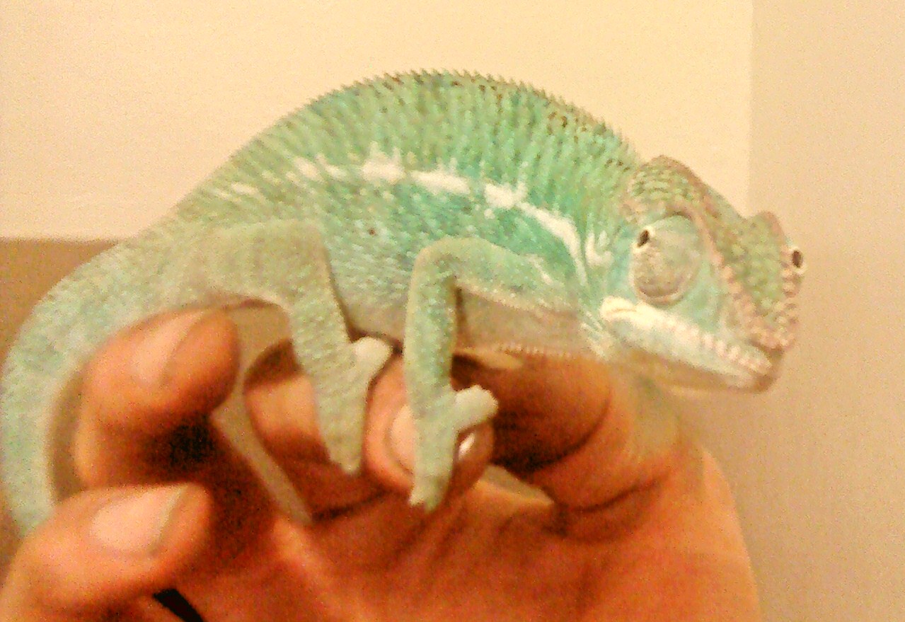 Your Chameleon - a male panther, theres a bit of debate on the locale im led to believe hes a blue diamond but he hasnt fired up fully yet. hes been in my care for around 3 months now, his exact age isnt certain but i pressume hes around 7 months? hes about 11-12 inches from his nose to the tip of his tail