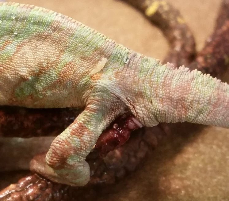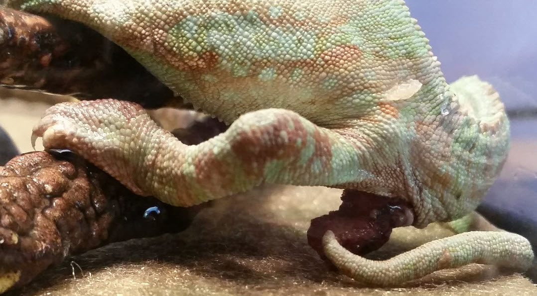 My veiled chameleon has something stuck in it under its tail. It's been in there for more than a week. I tried grabbing it with long tweezers but it's very hard (like a rock) and stuck in there really well. Anyone know what this is?