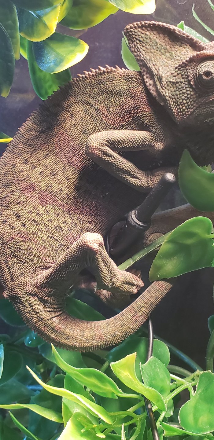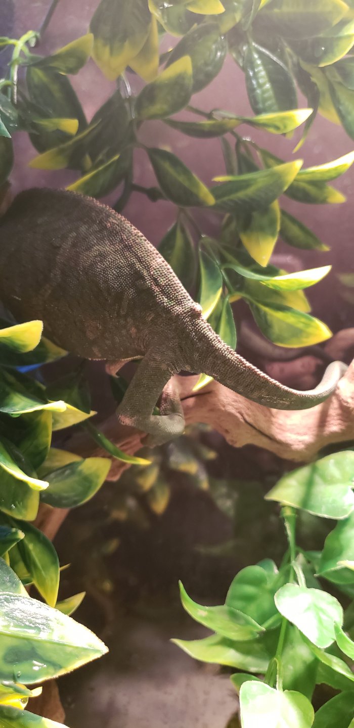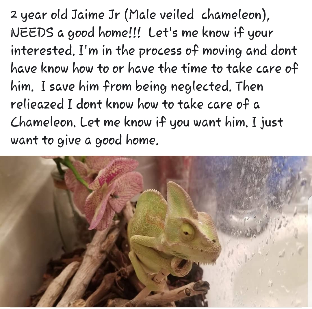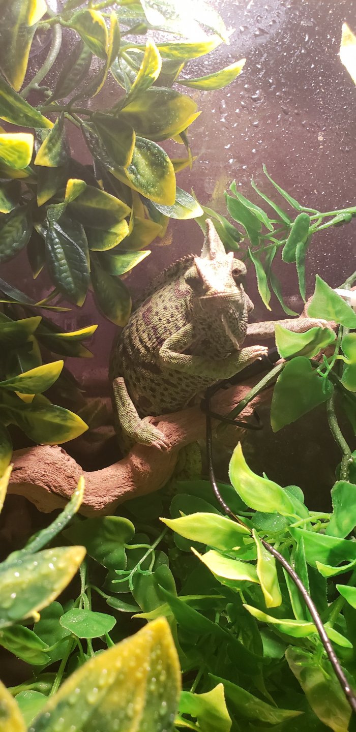 On Friday I was tagged in a Facebook post about a chameleon that needed a good home, by my friends daughter. I had no intention of doing any type of chameleon rescue because I know it can come with lots heart ache, and I wasn't really prepared to do that. But under the circumstances I agreed to take it. First the post said it was a 2 year old male chameleon, and I could tell right away from the picture they were wrong. So that brought my first concern of her possibly being egg bound.