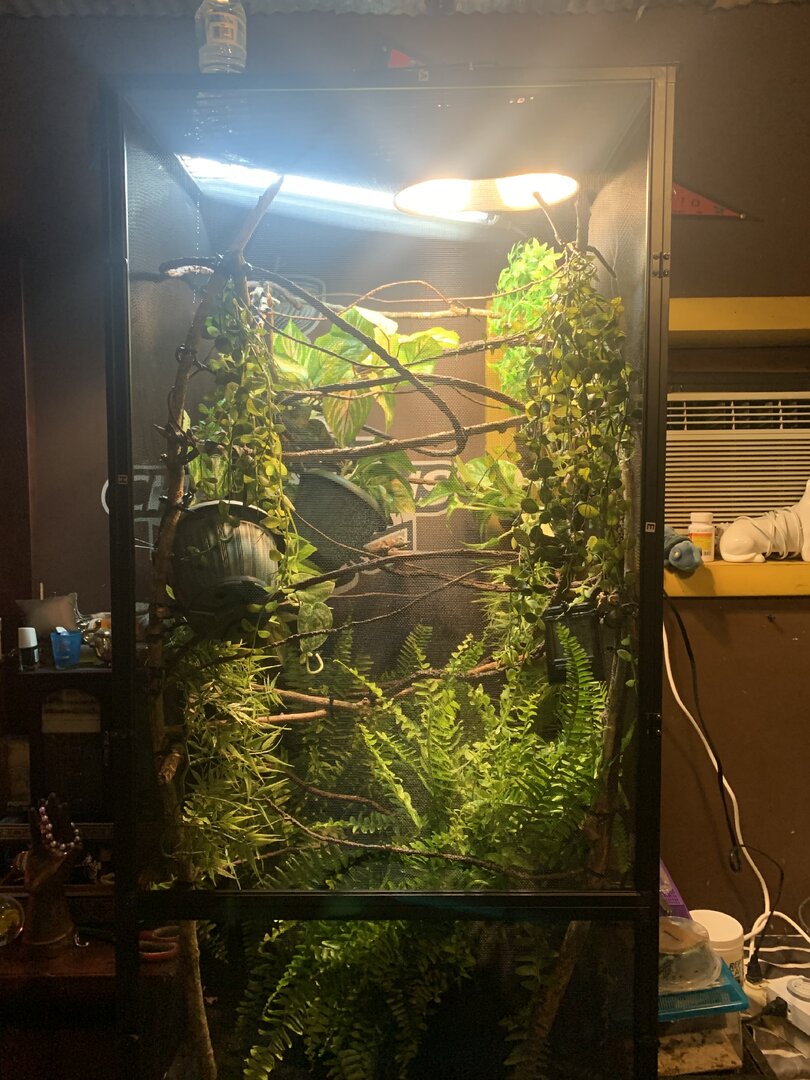 So Spaghetti’s big boy enclosure finally came in! Seeing the size difference in his new one vs his old one blew my mind! I got all his branches and vines in yesterday and I’ll be putting in plants today. Hopefully I’ll get him in his new home today or tomorrow!