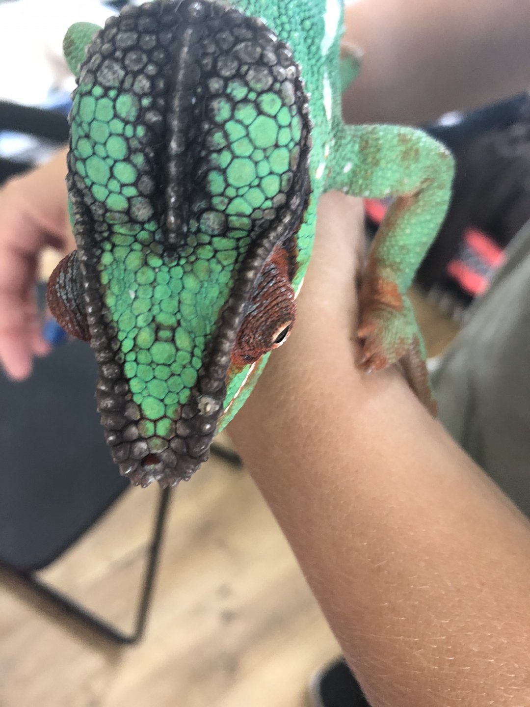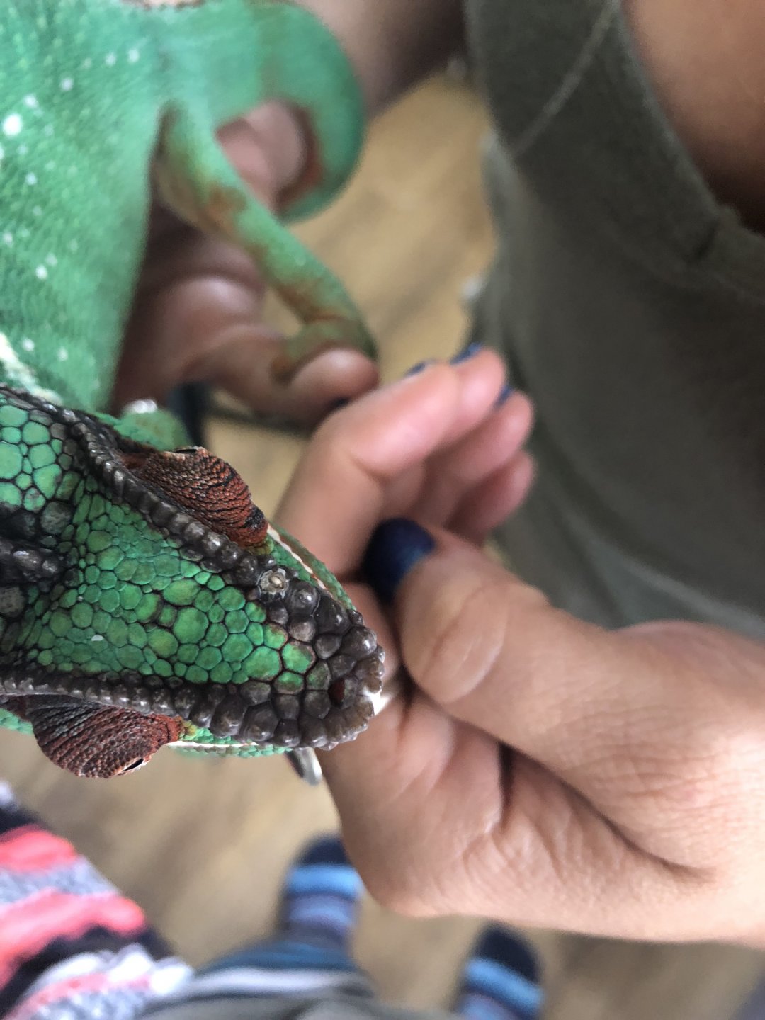 My chameleon recently developed a small spot on top of his head. I think it could be a burn but I’m not sure...Any ideas on what this spot is or anything I can put on it to help this heal? I do have an appointment with my vet this week, just looking for advice to help him ASAP.