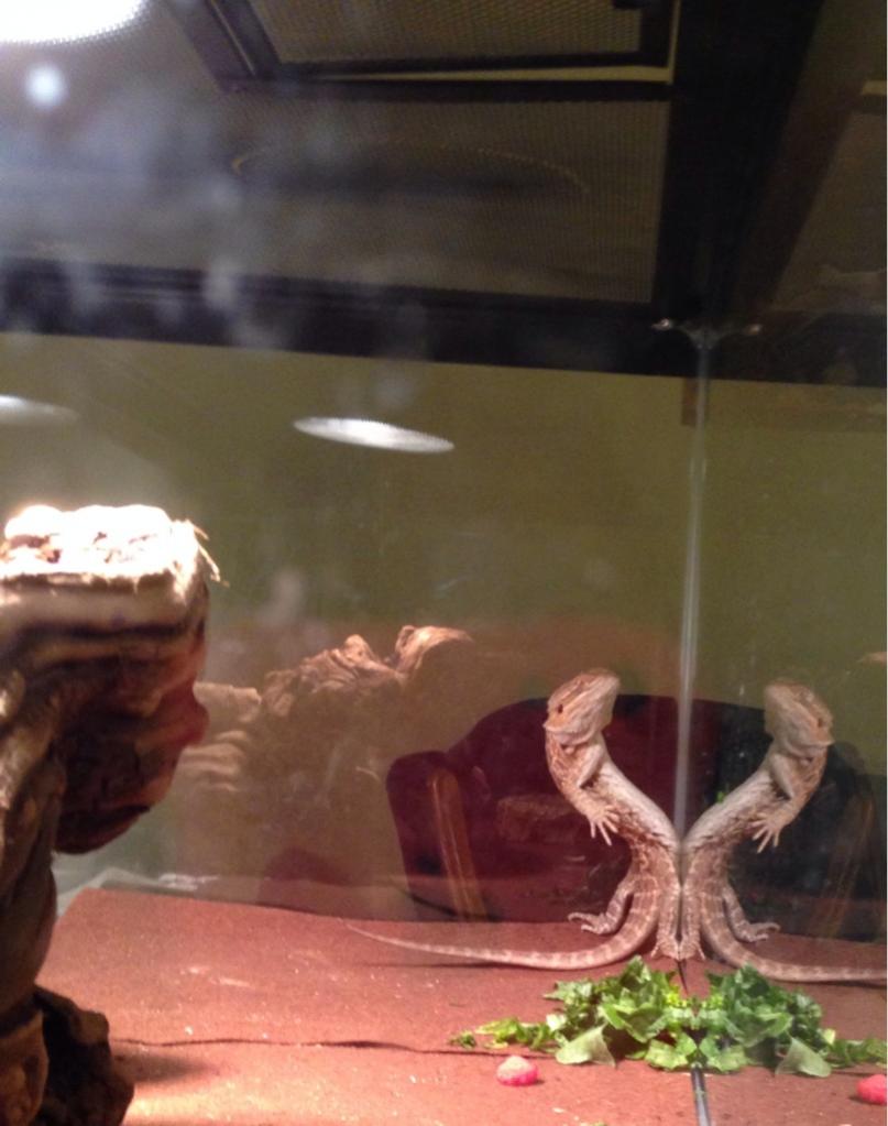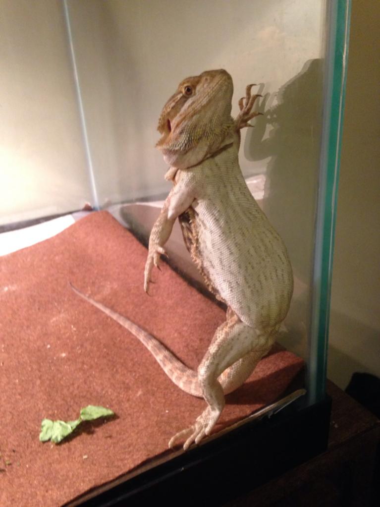 Sometimes Steve likes to press his junk against the glass for a good hour. He doesn't glass surf, just presses it on up there and literally does a back stand until he falls backwards. It's just odd. He cracks me up.
