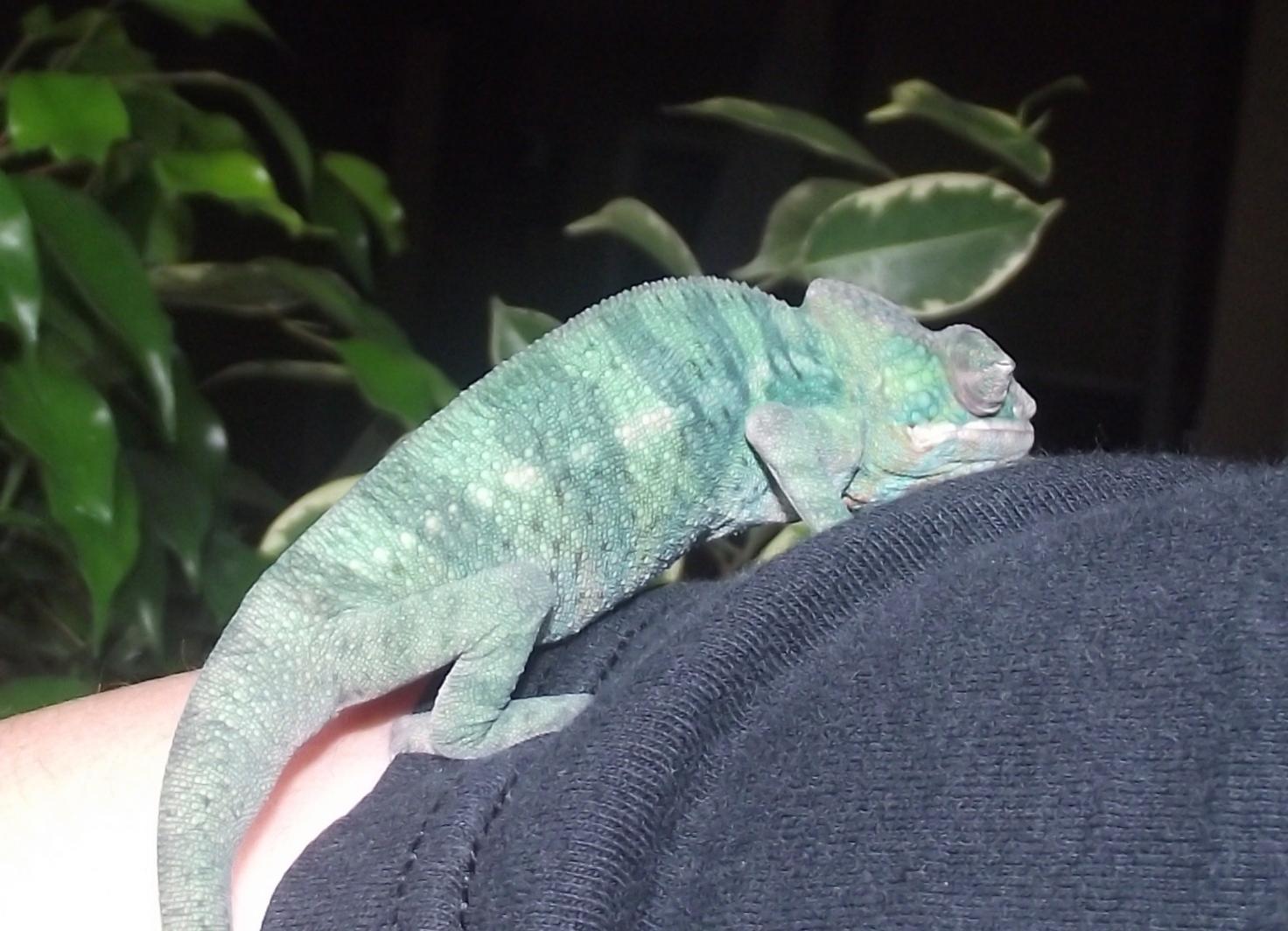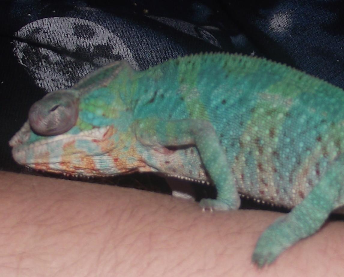 This morning update... he wasn't doing too well & had eyes closed when I came up to cage about 3 hours after his lights came on. He wasn't at top bask but on bottom branch near where he was sleeping last night & seemed a little weak. He didn't open his eyes when I slightly tapped cage to let him know I was there. I sprayed for about 10 minutes or more w/ him having no interest so I tried to touch him for response. He flared a little but not much so I touched him a little more until he opened his mouth to me & put water in there w/ a dropper. He swallow & then I sprayed some more. He then moved around his cage a little. I took him out & he ate a small wax worm from my hand (had one yesterday too for the first time ever... I left it in bowl w/ some cricket checked back later & it was gone). After eating the worm & hanging out of his cage a little I went to put he back & he didn't want to go back in the cage & keep turning around & go up my arm. I'm hoping the worm w/ help w/ hydration. Right now Diego is full from worm & a few cricket, he is basking & digesting w/ eyes closed (in that rest like state). His colors look good & he seems more content not weak. I'm gonna wait an hour then spray like a mad women again... hopefully after eating & digesting he will wanna drink.