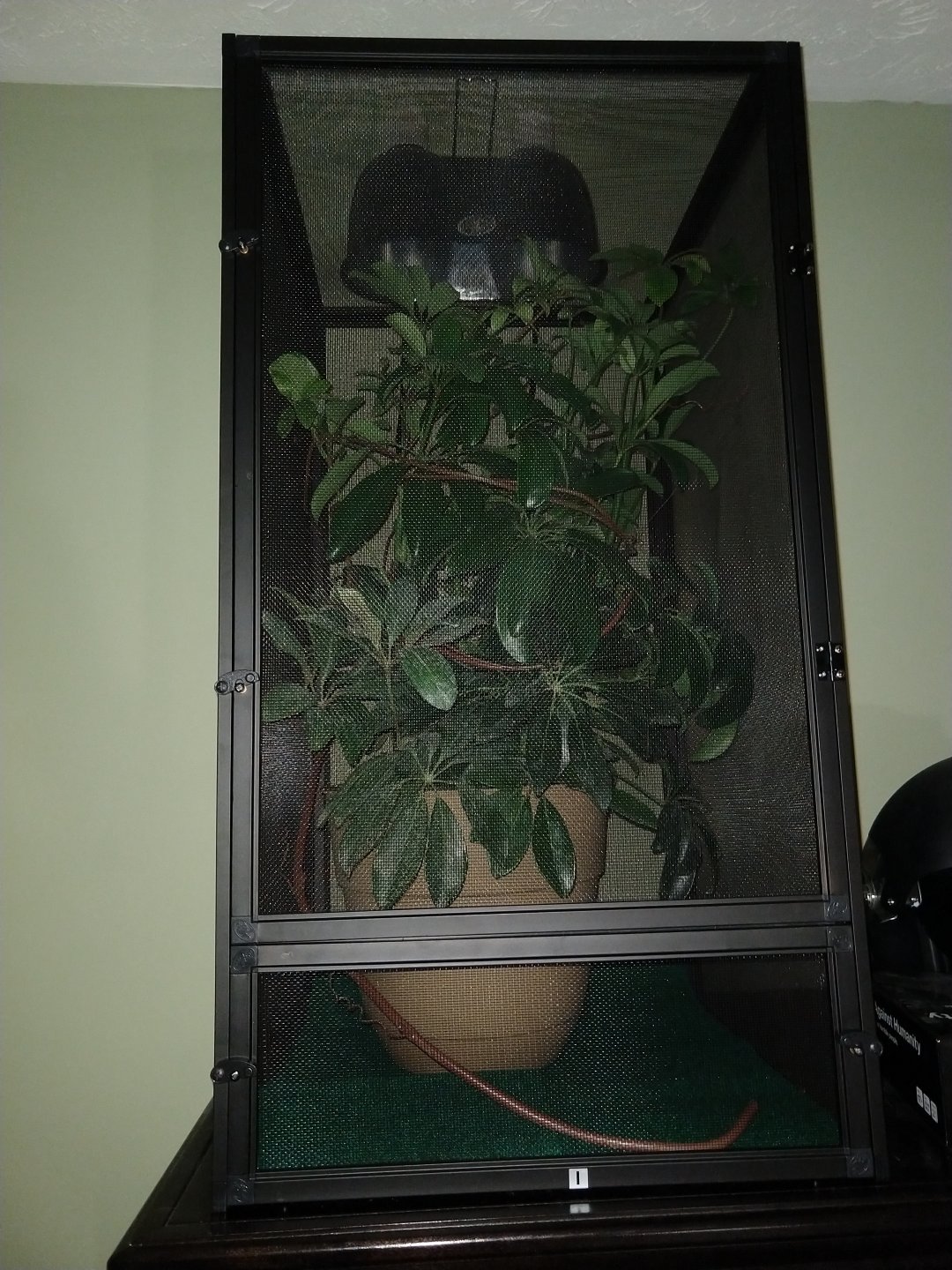 I'm struggling to regulate my panther's humidity and it feels like I'm fighting an uphill battle! When I first got him, I was misting 3 times a day (noonish, 9pm, and 5am. I work second and 3rd shift). Im hand misting with a small bottle from Petco, not sure the exact volume of water. I noticed that the humidity was dropping down to 40% between mistings. I tried to fix this by adding shower curtain on 3 sides. This didn't seem to make any difference at all. Then I read that misting him after lights out was not good, (lights are on from 9am-9pm) so I cut out just the 5am. I didn't see a difference in the drop but I worried this wasn't enough, so I doubled the amount I was spraying each time. Today when I went to spray at 9pm it was at 30%! I'm saving up for an automatic mister but what do I do in the meantime?