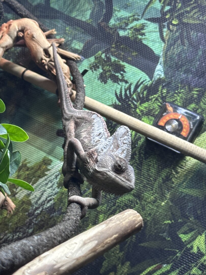 Ok so if your hydration and humidity levels are on point for a Veiled chameleon you never alter this. Everything should remain the same even when they are shedding. Meaning 30-50%max daytime humidity and then at night up to 100% humidity only when there is proper airflow and temps are below 67f. Colder the better when you fog.I stopped misting, fog at night to keep humidity high during sleep, then I didn’t fog this morning or a full mist. Just for where he drinks. He got some silkworms this morning, and a hornworm for some extra hydration, and he’s eating some crickets now