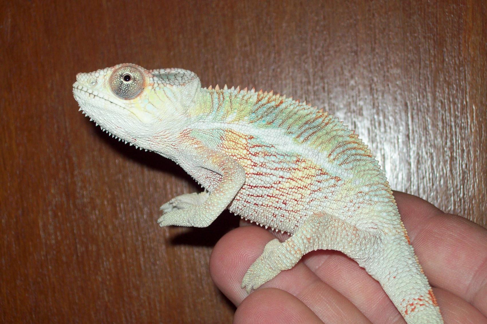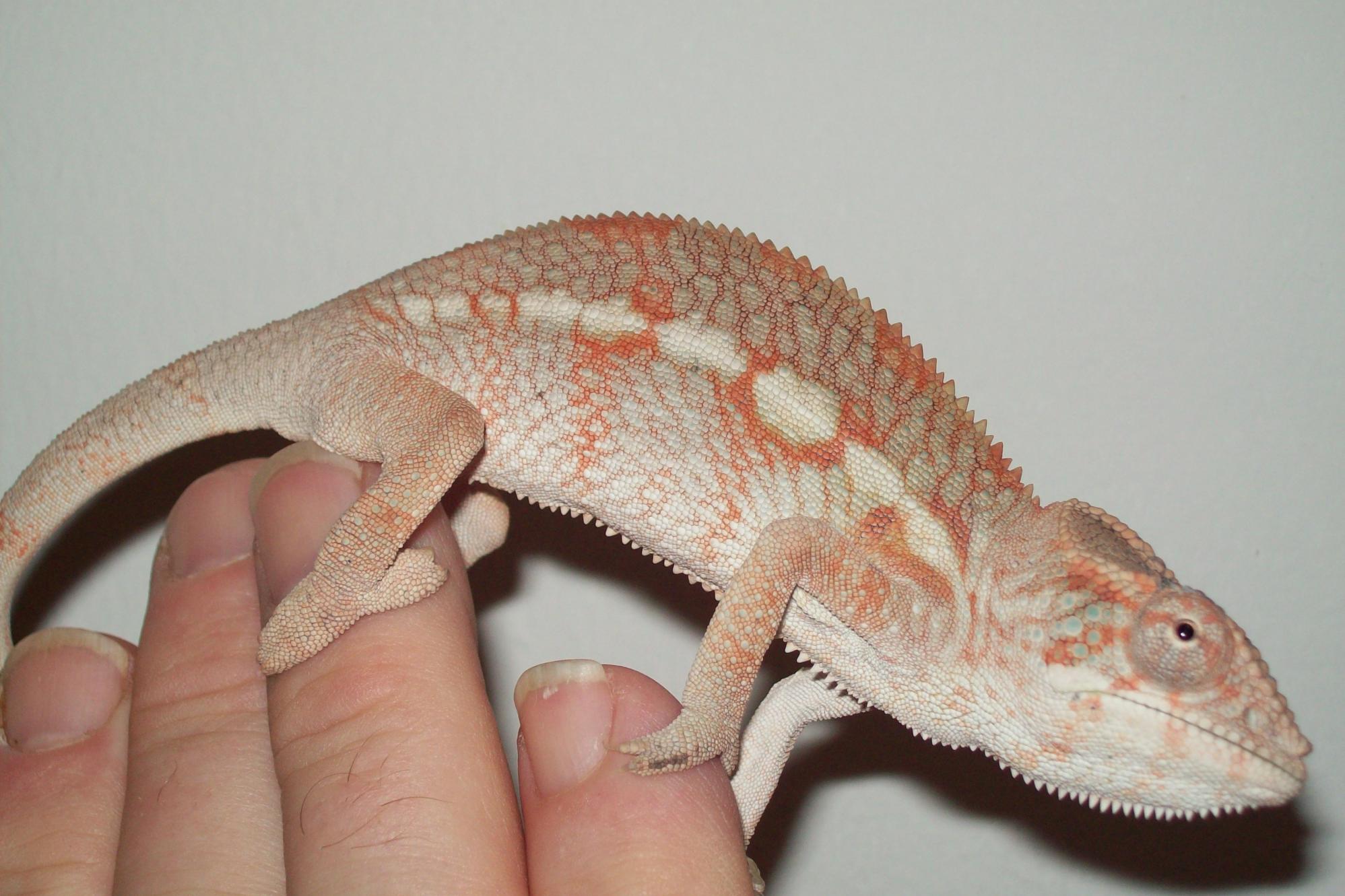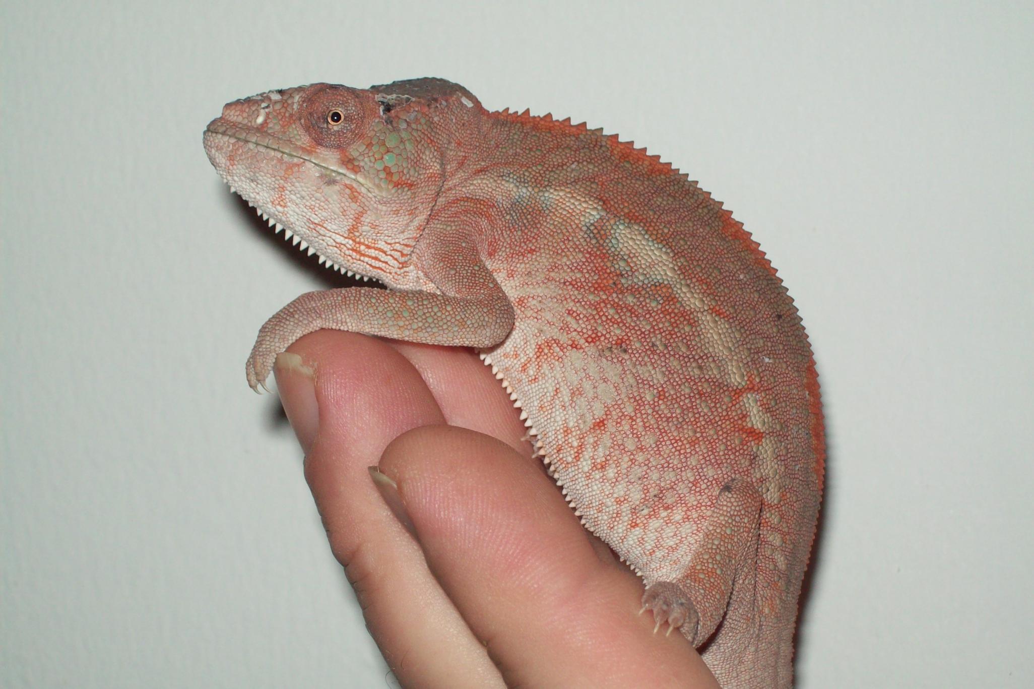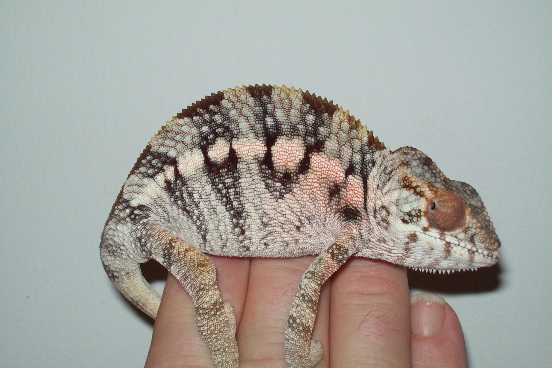 Ollie x Candy Cane Jr (Komeleons and Chameleon Paradise) - I have 2 females from this pairing left. They are 7 months old. Female 1 is 42g, and Female 2 is 25g. I expect Female 1 to massive in size.