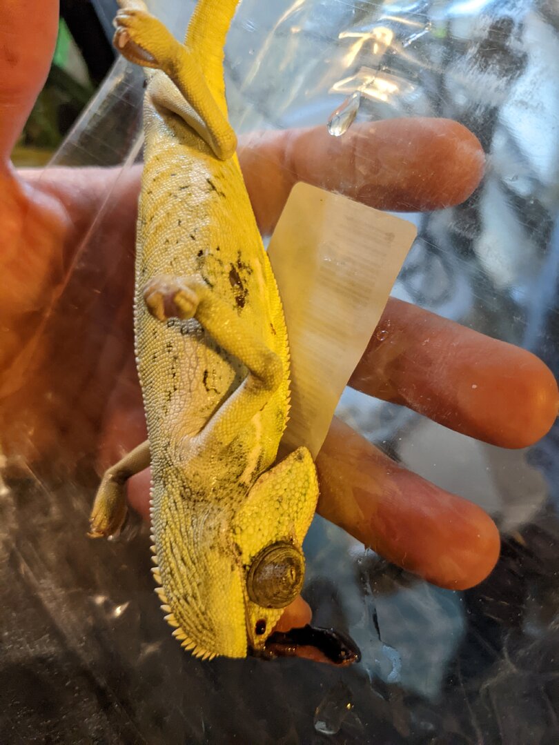 One thing I can say I have definitely learned from all of this: Never again will I bring home another chameleon with a tongue disability or defect of the mouth. Their mouths and tongues are really all they have. If one or both those parts aren’t working properly, that’s a chameleon looking at a life fraught with complications. Congenital defects we can see also bring up the possibility of those we can‘t; I suspected something was off, but prior to bloodwork, I didn’t realize Bastion was living with a compromised immune system. There is already so little margin for error in healthy chameleons, and even less so in those born with health issues/abnormalities. I guess I couldn’t appreciate the gravity of the issue until I tried taking it on myself. I also wanted to apologize, this may not be the best example of a sudden death. it’s just that I brought home a chameleon that was seemingly normal beyond a birth defect. He was good until he wasn’t. Proper lighting, appropriate sized housing, correct supplementation, hydration were Provided. Good nutrition was provided to the best of my ability. When he was good, he was really good. When he’d crash, it would happen fast and hard.