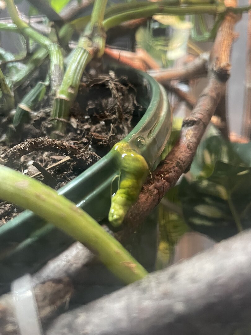 - I mist the enclosure once or twice a day, and I turn on the dripper during the day. She’s not shy drinking water in my presence.
