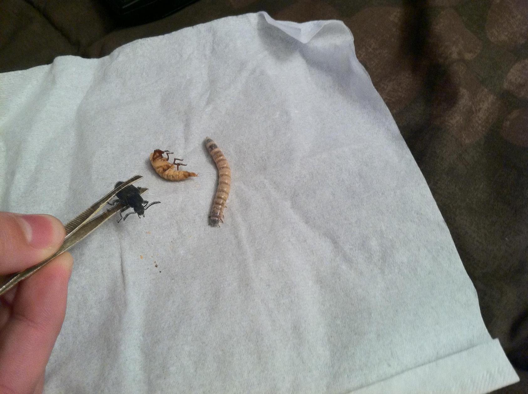 ChameleonRave Avid Member Sep 9, 2011 #4 I have about 8 beetles right now and about 5 pupae and a ton of worms. :3 My mealworm colony is taking off too! Thousands of babies