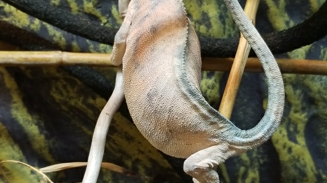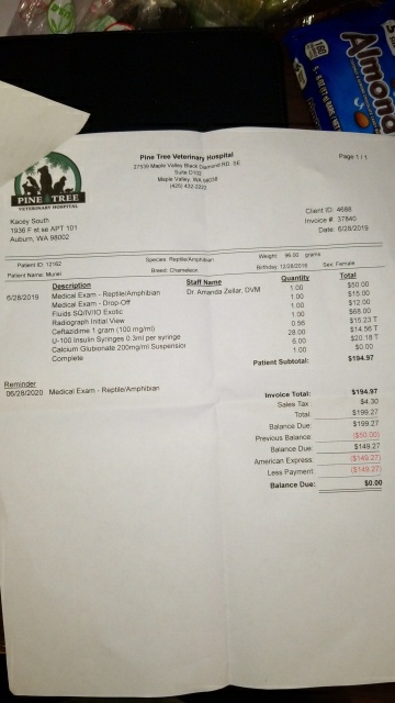 We had to move very fast and stay in a hotel I put her in a glass 18x18x24 all I had room for when we got to the hotel the next day she had very sunken eyes and low energy I gave lots of water and she would eat she got better the day after then the next day she looked okay but hen her eyes sunk in again she ate 2 roaches and threw the second on up the next day she seemed a little better still eating so I took her to the vet the vet took x-rays and said that she had some very large eggs and they didn't have a shell on them she felt that she wouldn't be able to pass them even I they form she want to do surgery to remove them and she wants to do a hysterectomy so the problem doesn't occur again she gave me antibiotic shots to give her and liquid calcium to give her everyday