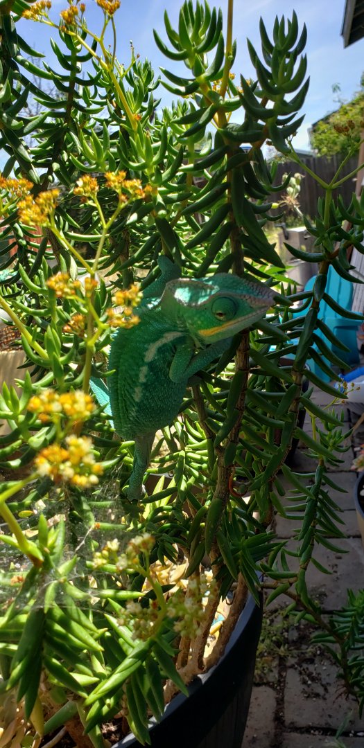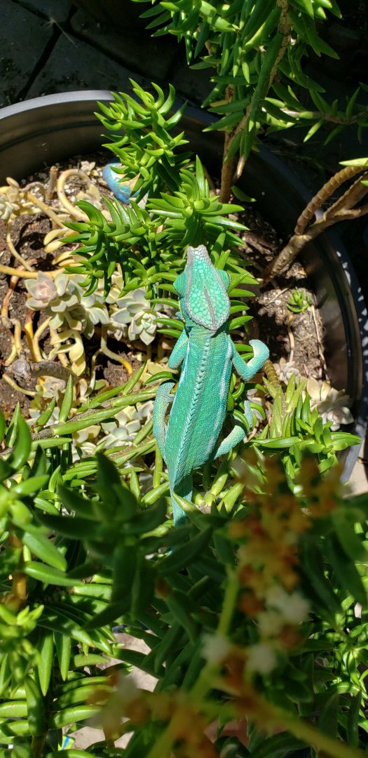 He definitely is. Funny, I put him up after about 45 min of sun, shade and flies then he started a shed! More blues on the way!I love it! "Fly assassin"! He is really showing his Thomas blues, isn't he!