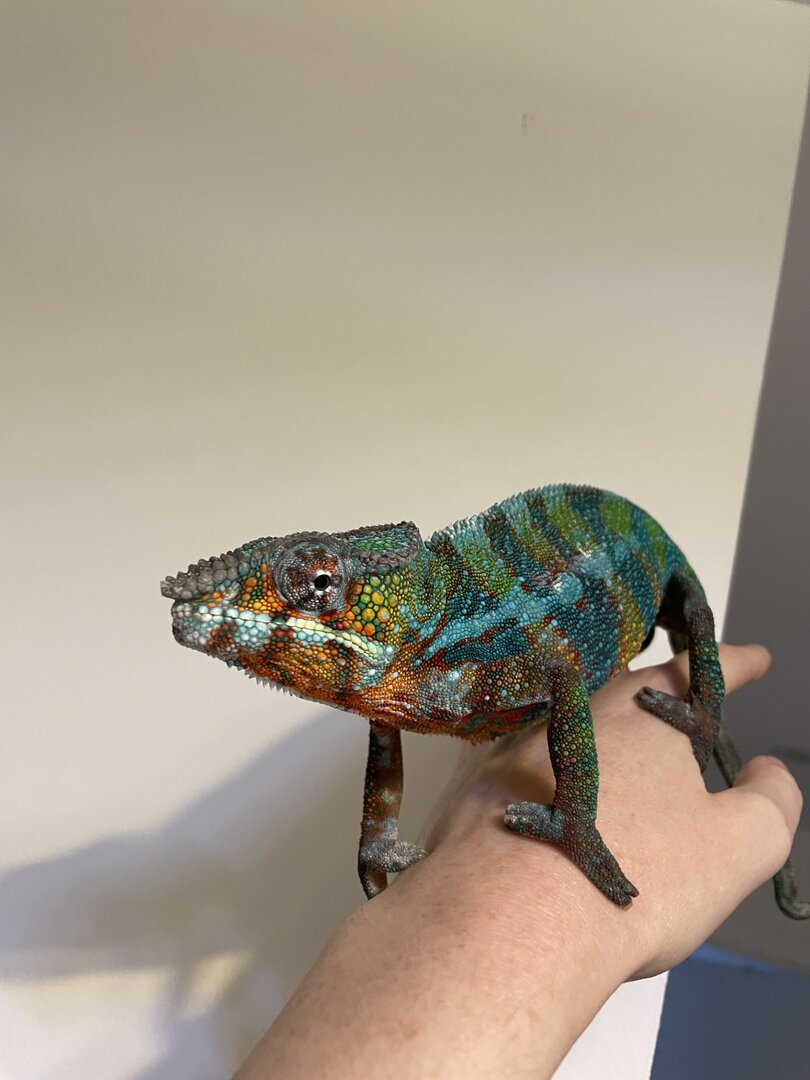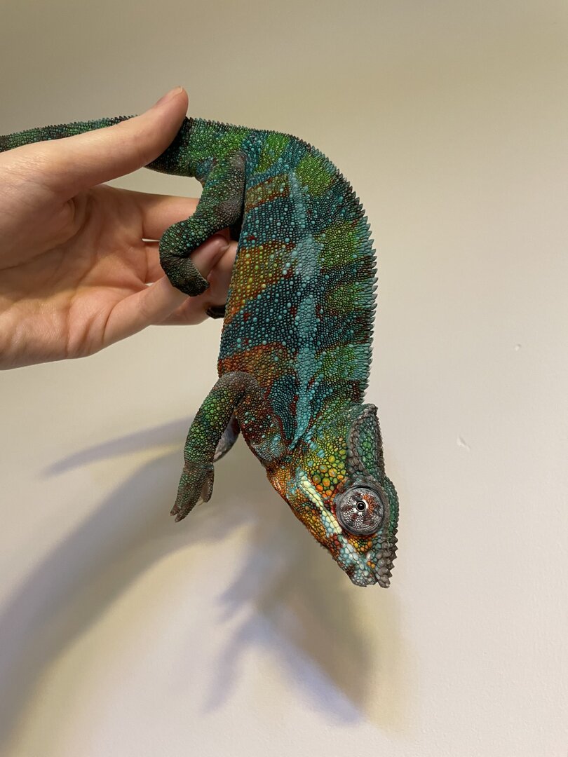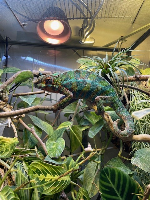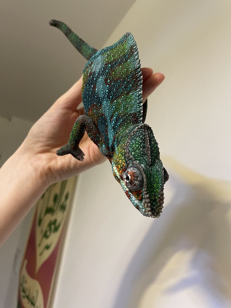 Your Chameleon - Male, panther chameleon, approx 2 years. Deformities since baby: missing last third of his tail, deformed tail bone & multiple bite scars. I rescued him as a juvenile from a horrible breeder who was going to put him in the bin!