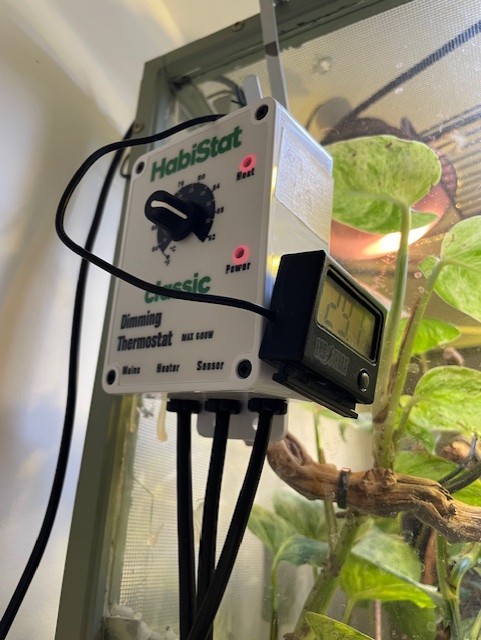 30C / 86F basking temp controlled via thermostat