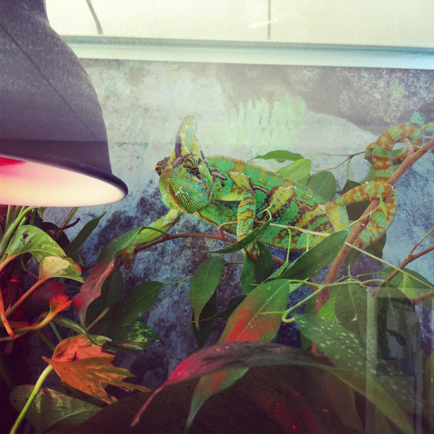 Im handling him quite often cause he wants to get outside from his terra to get a walk and hang around on our plants. He has ficus benjamina, Epipremnum pinnatum and Monstera deliciosa in his terrarium (real plants). The plants outside his terra are mostly the same + Pachira aquatica. I think non of these plants are bad for my veiled cham?