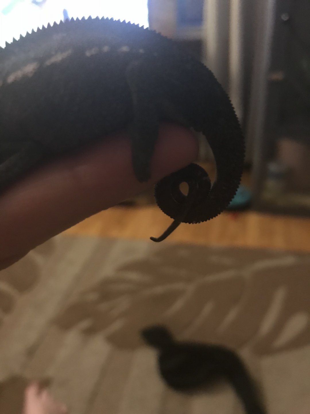 Gus is 4/4.5 months old. I’ve had him for about over a week. I got him from a very well known breeder in Canada. I do not plan on breeding. He’s not my only cham, I also have a super translucent veiled female! I will try and get some close up pictures. Can I message them to you ? I’ve already bonded with him for than my female. I’ve had her a lot longer too lol! He is definitely such a sweet little guy. I’m just a little upset that the breeder never mentioned anything to me, and still made me pay full price. I had contacted him about it, he said he would send me a new one and that I could keep Gus too!
