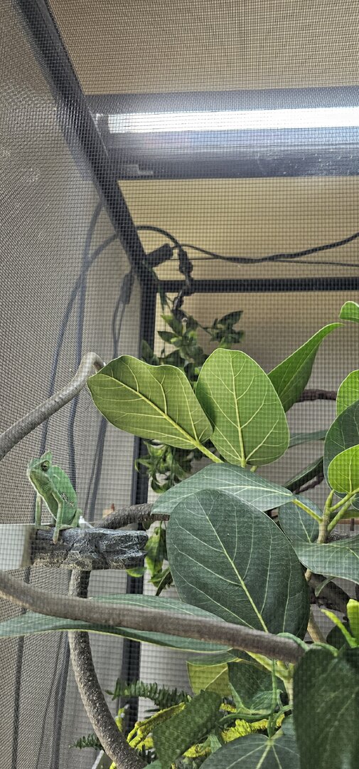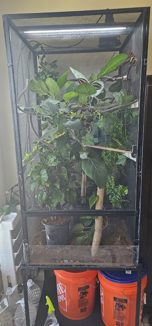 https://www.lllreptile.com/products/32456-zoo-med-reptibreeze-substrate-tray-xlarge This is the best price for these that I’ve found. Lava rock is a good alternative if you can’t find the clay balls for the drainage layer. I use a thicker landscape fabric on top of the drainage layer to keep it separate. It’s usually wider which is perfect to keep as much substrate out of the drainage layer. Then I start tossing in stuff - organic garden soil (check that it doesn’t have roaches living in it - yes, that happened to me), a bit of play sand, some coco coir, chopped up sphagnum moss, orchid bark, and if you by chance have any insect frass (frass is poop) or worm castings, mix some in. Some will add a layer of charcoal between the soil and drainage layer. I just mix it in with the soils. You can use horticultural charcoal or get lump hardwood charcoal (not briquettes). Put your cleaned plants in where you want them and cover with a thick layer of leaf litter. We can use chopped up palm fronds too. I add some cork rounds of a decent size for the isopods to hide beneath. There are some gorgeous isopods available, but really just get some basic and hardy ones, like giant canyon. You’ll rarely see them and your chameleon will eventually realize he has snacks in his house. Add some springtails and then finish setting up your enclosure with lots of natural branches and safe live plants. If you aren’t yet ready to do the full set up, move your clean up crew to a big bin (add ventilation to the lid) with some leaf litter and toss them some veggie scraps and mist the soil every so often and they’ll multiply. Keep the floor bare until you’re ready. I waited until I was confident in my basic husbandry and felt I had a decent understanding of bioactive before taking the plunge.