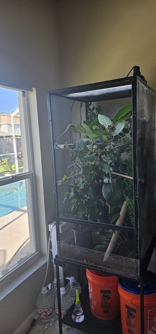 Op had private messaged me and we did talk a bit about temps, humidity and the substrate/going true bioactive. I didn’t know the enclosure was in front of a window though.