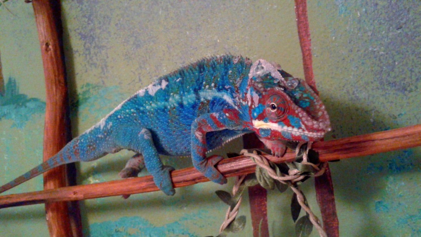 Stage 1: Chameleon becomes dull and dusky, owner realizes cham will shed soon and is wildly happy that stringent feeding/supplement/misting schedule is succeeding and chameleon is growing and healthy!