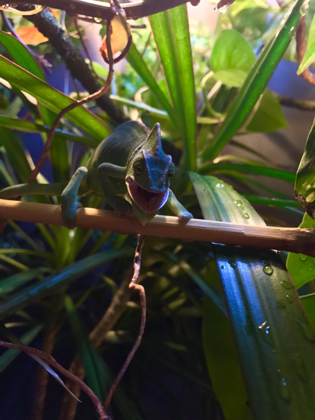I am vary happy with his growth and development he enjoyed his first hornworm today along with some flys. He is becoming more social and he is just such an amazing creature. Here is him as of now and when he was a baby.