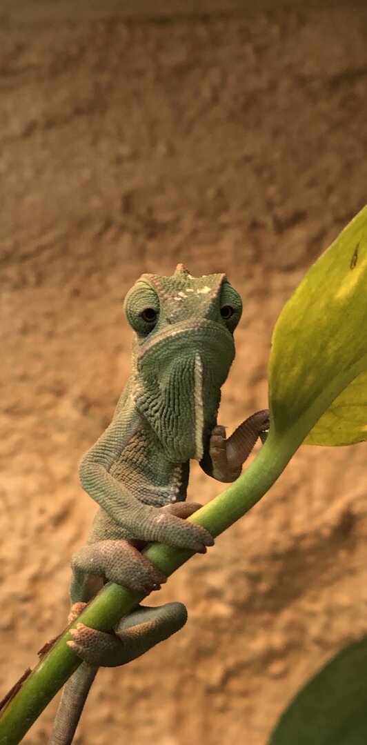 Hello all It’s been a while and for that I’m sorry, life has a cruel way of throwing spanner’s in the works and after finishing building my terrarium in July it is only now it’s been possible to get my little baby, wasn’t a bad thing as the plants have really come on under the jungle dawn, so picked him up yesterday and settled him in to his new home, seemed to be relaxed and on getting home he walked onto my finger without hesitation and the onto basking branch , opened the flow on the big dripper as I wanted to make sure he saw it which he did and made his way over and climbed up the pipe