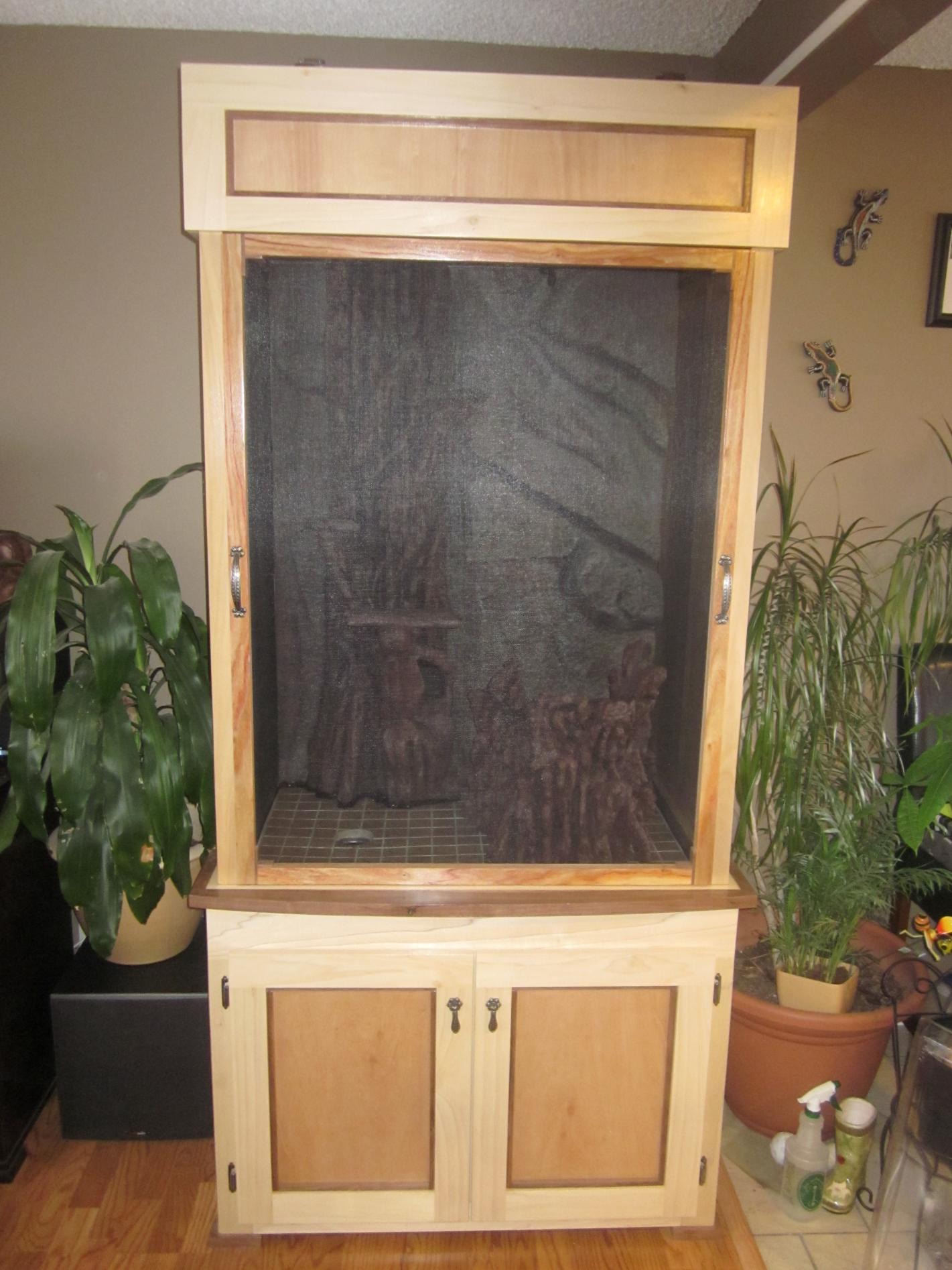 Some set up shots. I'm really happy with how it turned out it was made for my adult male panther, now i just need to get one lol. There are a few things that i would do differently if i built another one, got a few good ideas that a guy never thinks about till after. This was a bit of a pain to build, i'm a carpenter but i dont have a shop or a few of the tools like a jointer or a planer, had to do it by hand which means its the hardway "lol" Thanks for reading