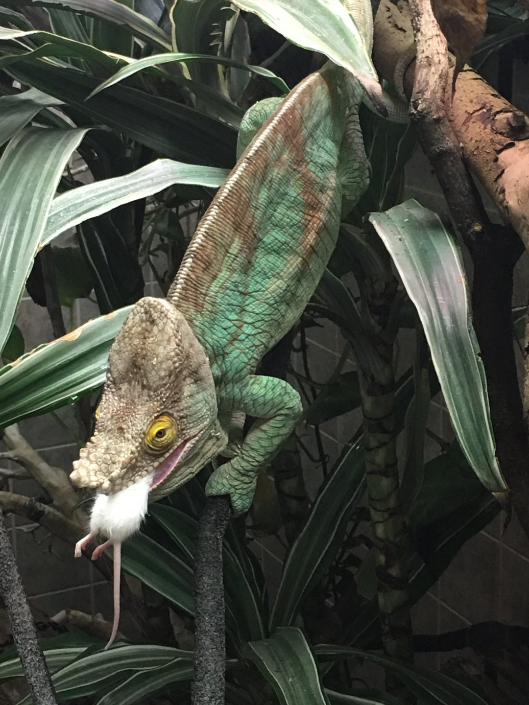 One such Parson was a sad giant I came across in a cage at the importer. While buying animals for the pet store I managed, I purchased him for myself and took him home. He weighed a little over 700g but looked very thin to give you an idea of the condition he was in. Six months later, two vet visits and a lot of patience rewarded me with a healthy Male who, once rehabbed, was actually closer to 850g. He was that bad off when I got him. He lived another 7 years, the last two of which he had no teeth. The bone structures in the jaw that are their "teeth" had been attacked by a nasty dual bacterial infection resulting in him surviving the infection but having to gum his meals to death since the doc removed each quadrant. Fortunately for him I killed everything for him before hand feeding his old ass. When he passed he weighed 1049g. Not a small chameleon to say the least, especially for back in the 80's and 90's. His name was Hormone.