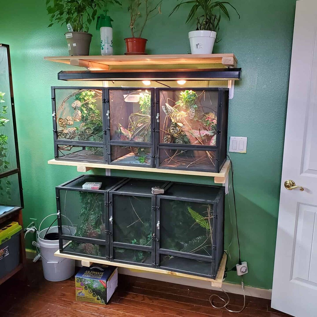 My two males are in the front left. 3 females in the back left. A skink in the middle lower left. My plants under a grow light in lower left. Female veiled is center of the back. Center right is my gargoyle gecko and below him is my williamsi enclosure (williamsi isn't arriving until next month). Then front right is my beardie. I have plants all around, bug bins, decor items, etc. I have plans for the room, but it will take lots of time!