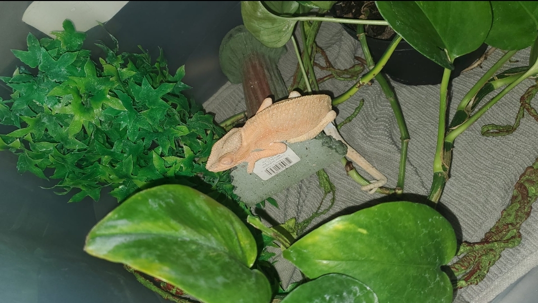 So about three weeks ago I noticed my 2 1/2 year old female Panther Chameleon Cozamalotl was not looking right. She was skinny, but she's always been a little small and otherwise was eating normally and drinking fine. Crawling around and not acting strange. Just kinda skinny. Fast forward a week to Sept 19th and I found her hanging from her tail. (for context, my recently departed Mona was hanging from her tail and quickly declined, resulting in having to put her down because of retained eggs from her last lay, that was July 31st.)