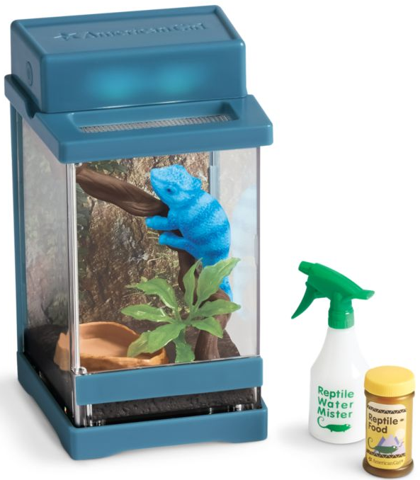 My niece just sent us her online birthday wish list. My wife showed me this item. All you need is a stick, a food bowl, and small plant with 7 leaves on it. Look how happy the chameleon looks.