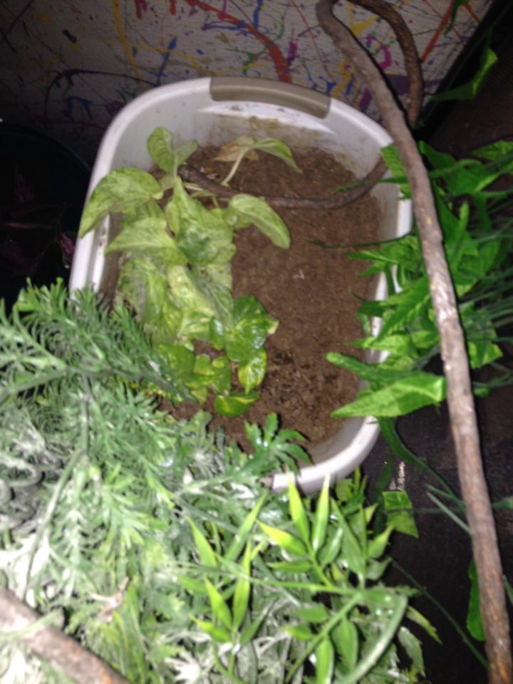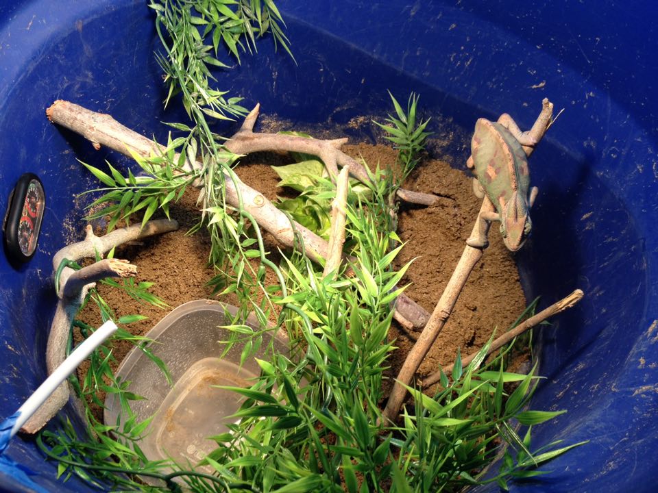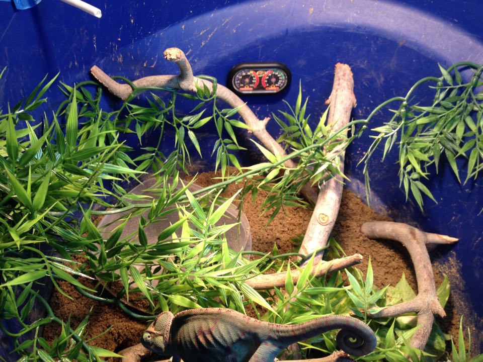 Also make random little perches from smaller vines that they can perch up on and spots to hide in the plants. My Chameleons love them.