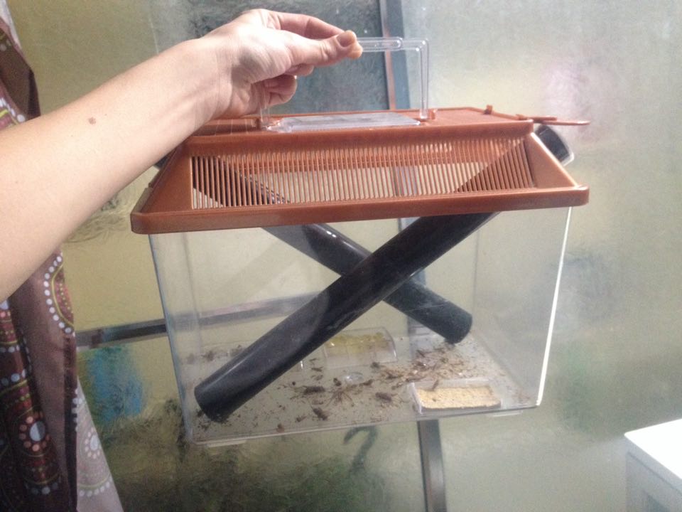 As for me, the only person willing to help me take care of them was my friends’ mom and their neighbors’ 11yr old son. So I invested in timers and Big Drippers. They help a lot because you have to keep them on a good schedule, otherwise they will stress out. I also got an Exo Terra Mini Fogger to keep the humidity at a decent level for them because at first I was using a spray bottle but with the aluminum screen cages I have for them the spray bottle just wasn't working. It made mess all behind my cages, which I’d have to move the cage to clean the water mess on the wall and wood my cages are on, and it just didn’t keep it humid in the cages, the water dried up so fast.