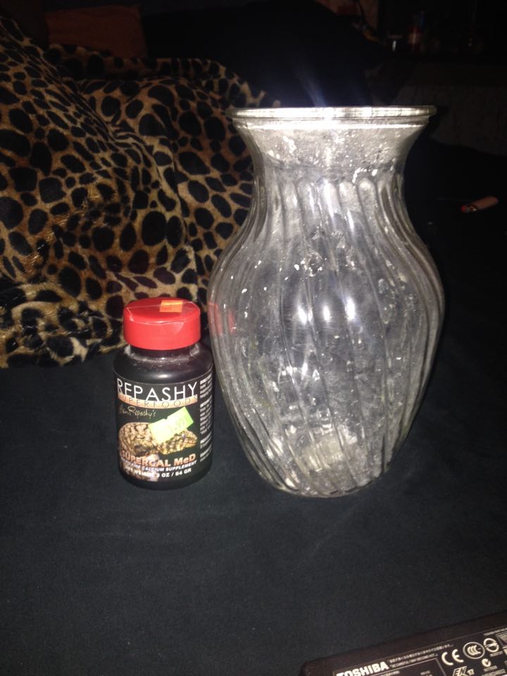 And then I just grab a black tube, shake some crickets from tube into this vase(they cant jump out of the one I use unless you get that one with some HOP).