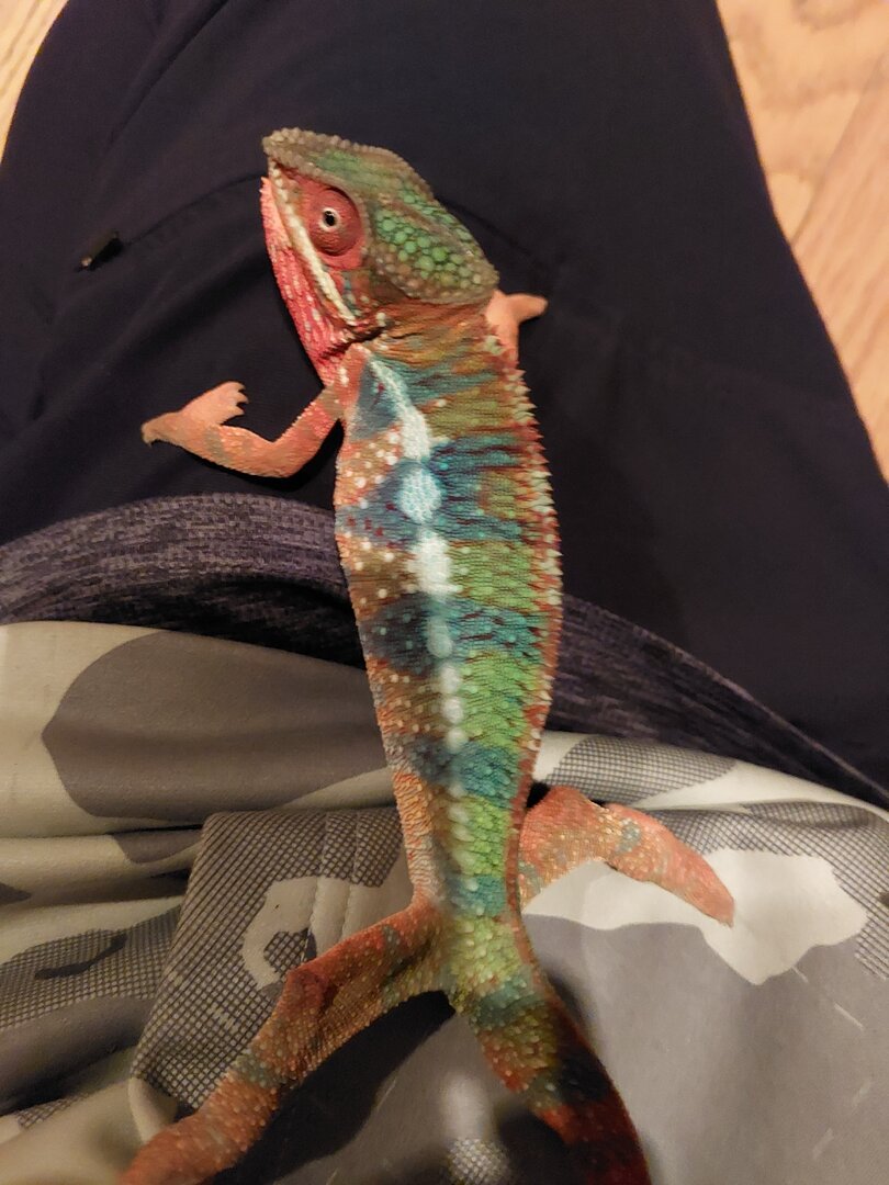 • Your Chameleon - The species, sex, and age of your chameleon. How long has it been in your care? Sambava male panther an is around 1 yr old. Had him since October 2021.