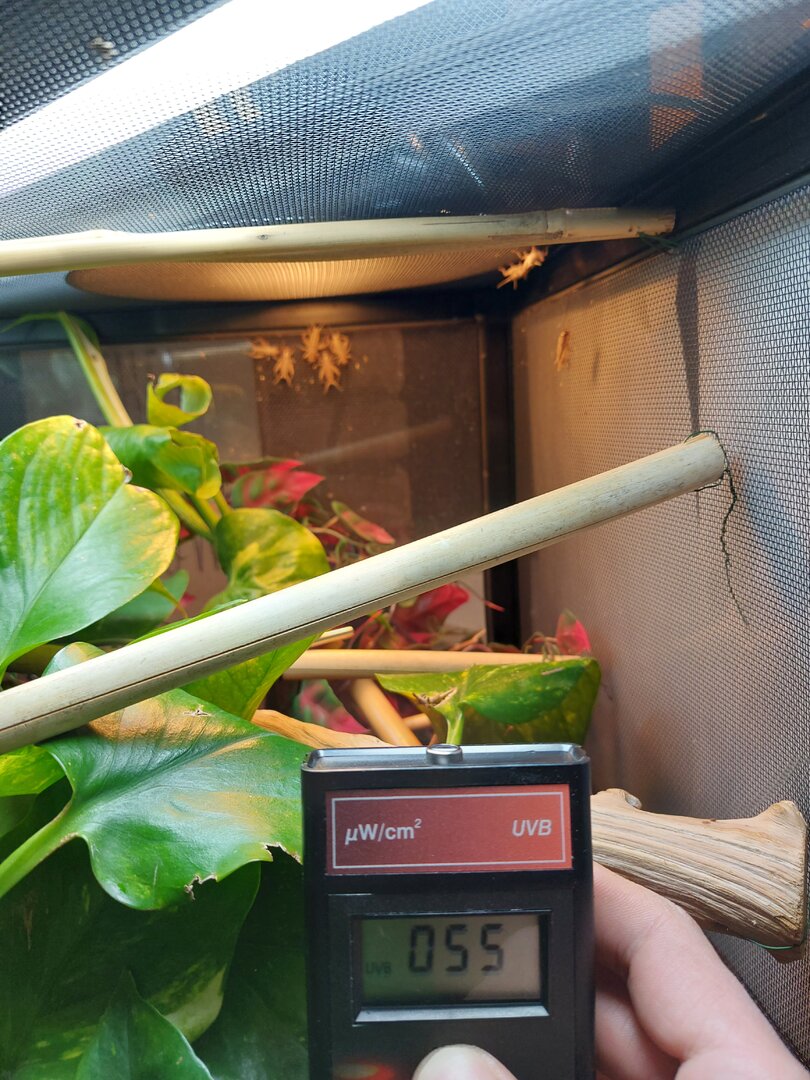 • Temperature - What temp range have you created (cage floor to basking spot)? Lowest overnight temp? How do you measure these temps? 86f with basking temps using a flukers 75 watt bulb. Have the bulb on a environment control center by zoomed with dimming setting with probe. Not to experience with this dimming unit. Floor temps range from 72-73f an use a temp gun. 67-69f with overnight temps.