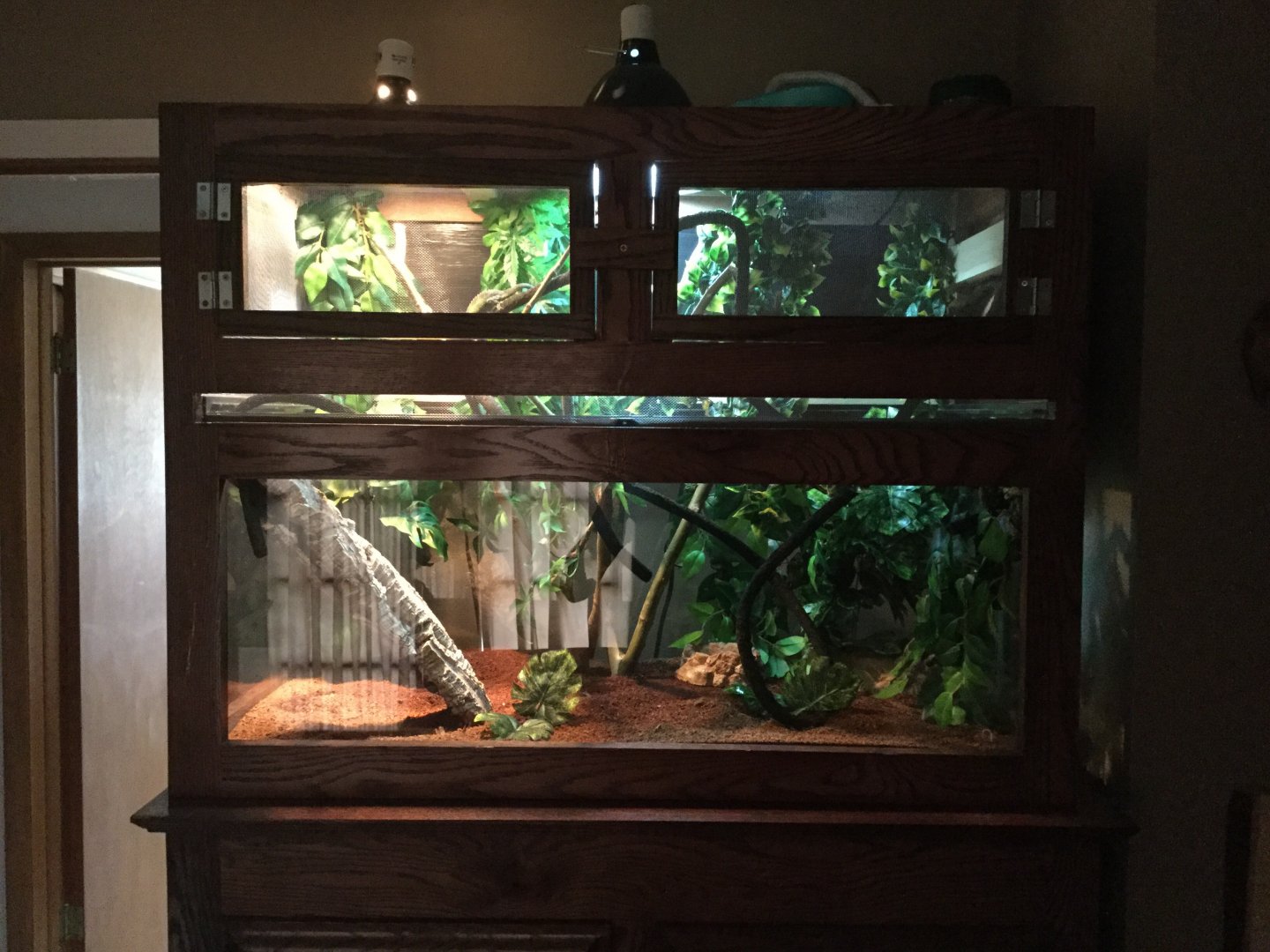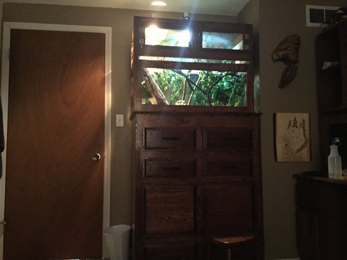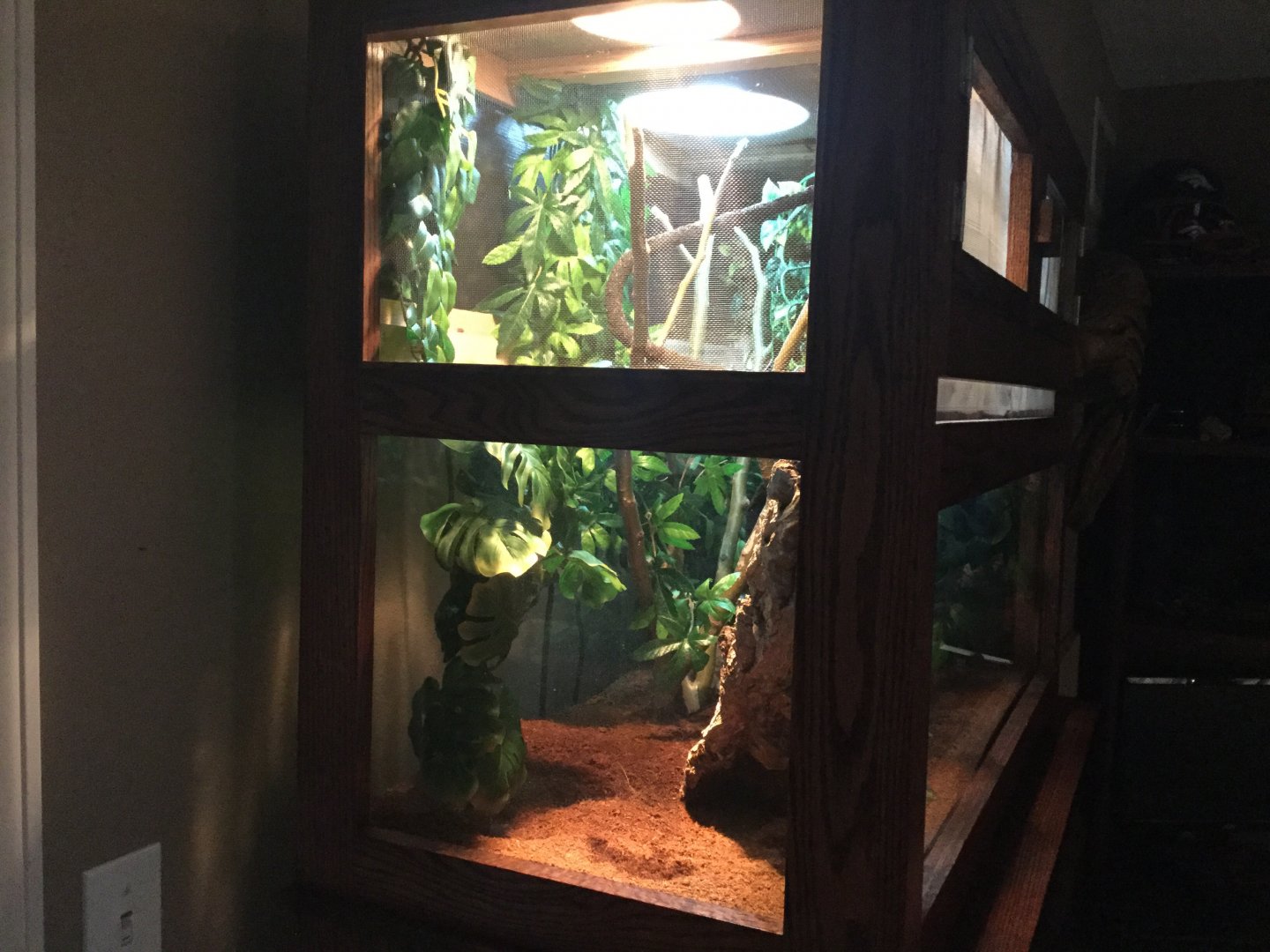 I think it looks good. You may want to add some more horizontal climbing branches and sticks for your cham. What breed and how old is it? You may want to consider upgrading to a bigger cage once the chameleon grows up. They need quite a lit of vertical climbing space.