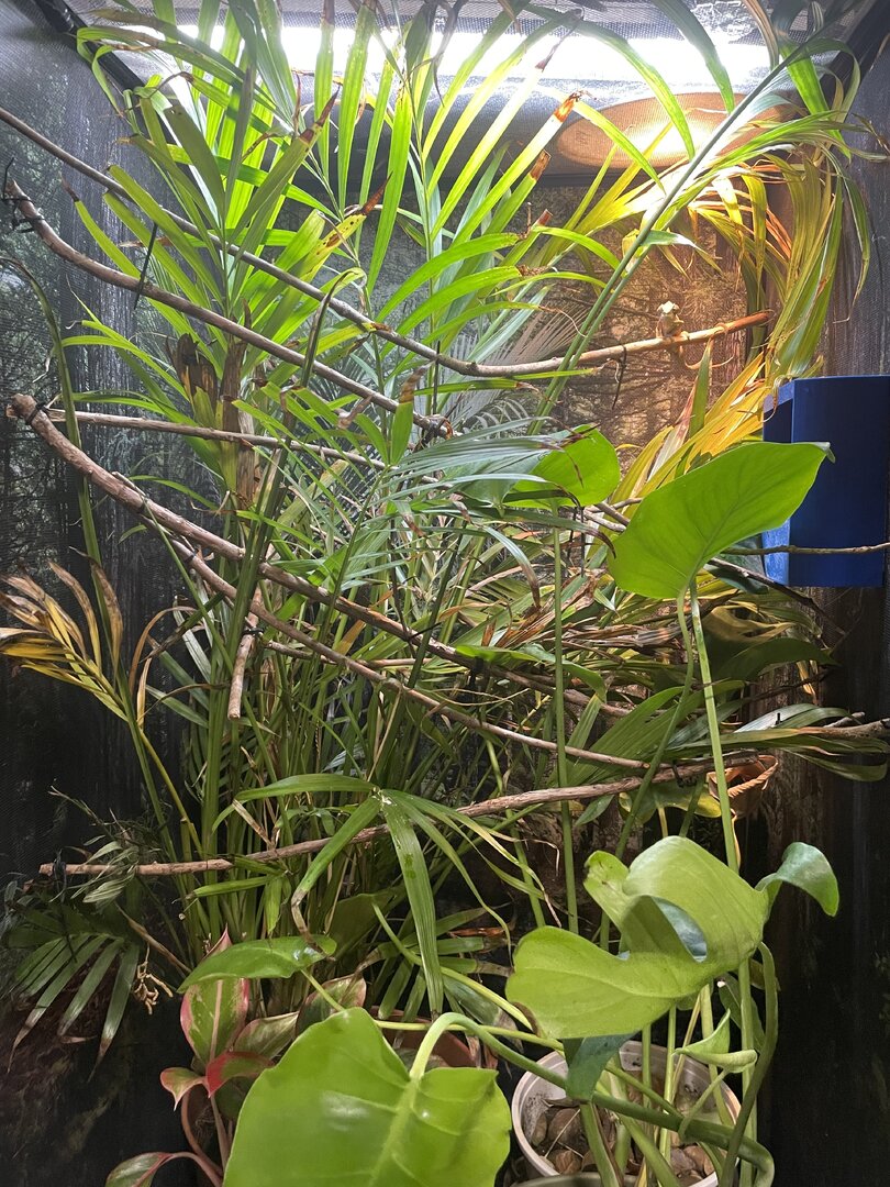 He’s a year old, the only health issue I had was almost exactly a year ago when he was dehydrated and wasn’t eating well, but that was fixed pretty quickly. He’s in a 24x24x48 reptibreeze with all live plants. I mist in the morning 30 mins before lights on and 30 mins after lights out. His bugs gutload on a mixture of different vegetables and occasionally bee pollen. I noticed yesterday, I think, that he had a pretty decent amount of bugs in his feeder and this morning they’re all gone, which he doesn’t often do. He almost always has left overs. So I’m not sure if he just had a really full tummy or if there’s something serious going on. Thank you in advance