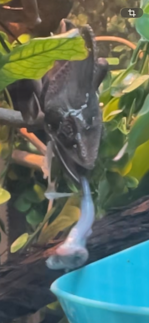 I took a slow-mo vidio of Pascal eating a black fly larva and it looked like his tongue was grabbing it do any of y'alls chams do this too. Warning gross tongue pic