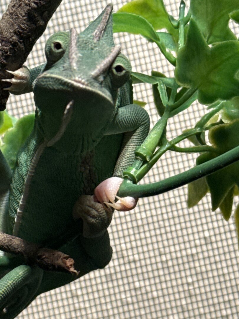 Hello I really need help on how to feed my chameleon. My chameleon recently had a accident where she shot her tongue out to my friends arm and got stuck to his arm hairs. We would usually hand feed her so I assume she thought we were going to feed her. So by reaction , my friend pulled his arm back and she pulled back too while her tongue was still on. We managed to get her tongue off his arm but she had pulled back so far that her tongue was completely hanging out and bleeding. We took her out her enclosure and put her in a box with wet paper towels so her tongue wouldn’t stick to anything. So 2 days passed by and her tongue had completely dried out and somehow it was completely detached from her mouth and on the floor. We set her back in her cage for her to feel more comfortable and less stressed. We’ve tried feeding her , but there is no sign of interest of her wanting to eat , it’s been about 5 days now since she haven’t eaten , I would hate for her to pass but I really don’t know what else I can do. She is also beginning to close one of her eyes and keeping the other one open, which is something I’ve never seen her do , I hope someone can help