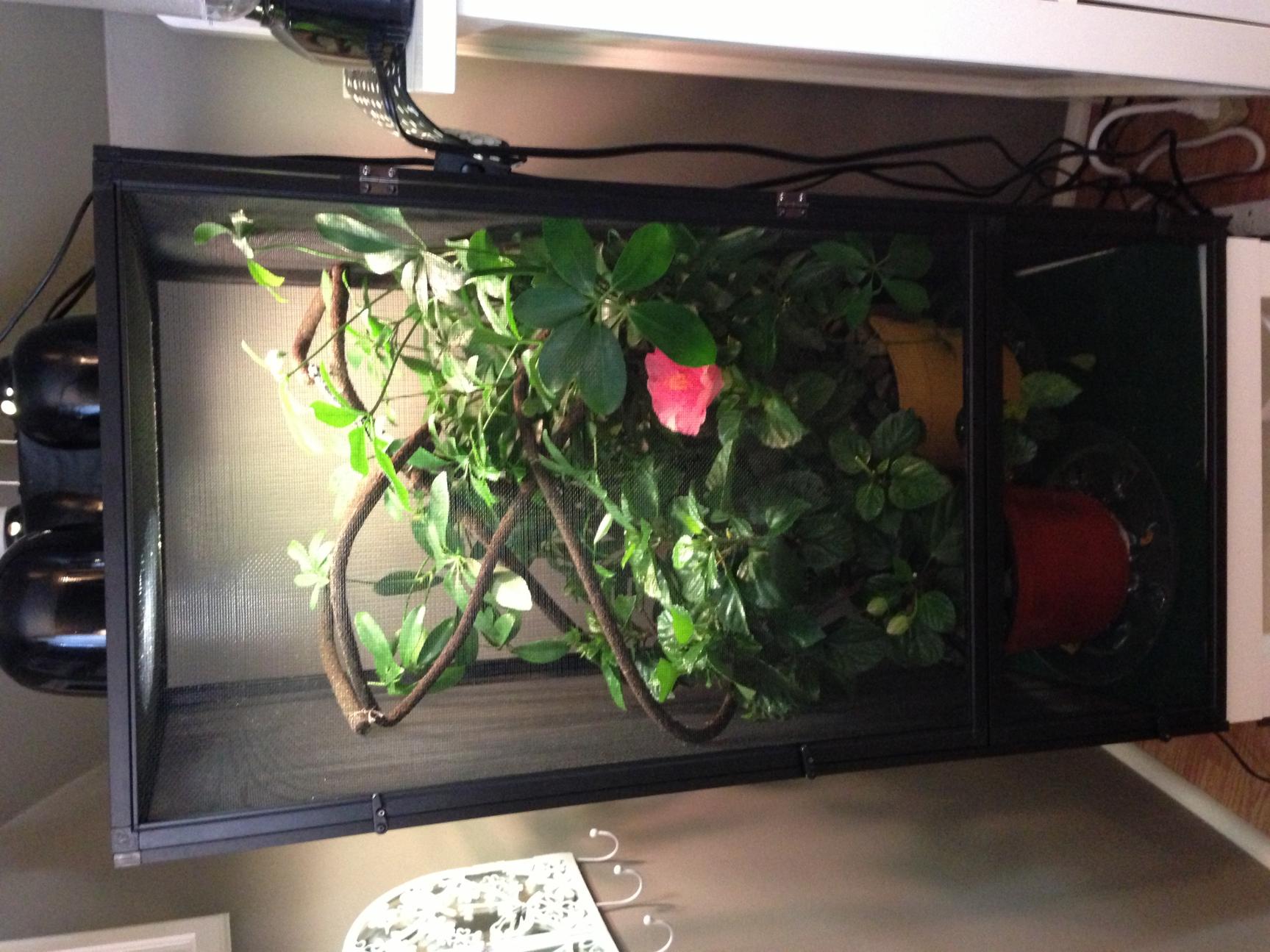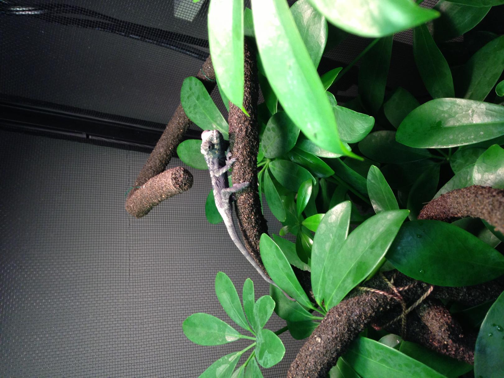 Ok so I have a 2 1/2 month old panther, he's been doing GREAT! I just have a question because this has happened twice so far since I've had him for 2 weeks- My lights are on a timer and they come on at 8:00 in the morning- this morning I came into my room around 10:00 and he still wasn't up - I am a little worried because I found him in the same spot I found him the first time he's done this - towards the middle/bottom of the schefflera plant I have and he feels cold (the light definitely does not reach where he was sitting) - once I move him he stays up and basks,drinks, and crawls around like a maniac! This has happened twice so far- at night it does get pretty chilly in my room but not freezing - Could it be too cold for my little guy or is it because he doesn't realize its daytime because of the leave coverage??