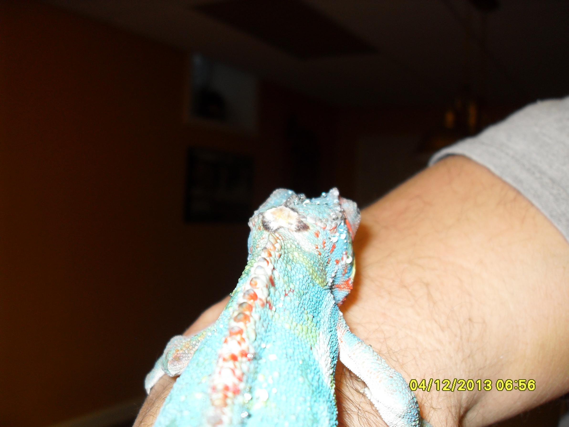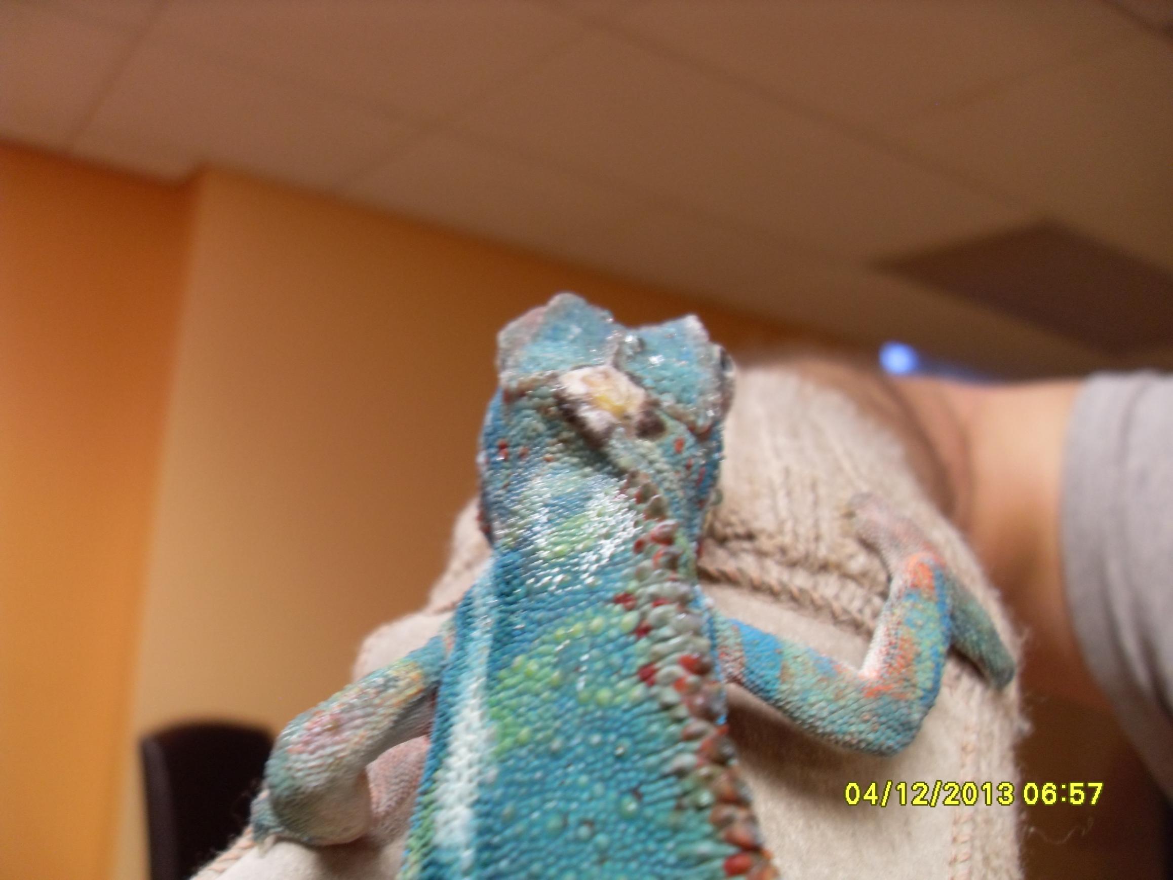 I thought this was a piece of shed thats been on top of my panthers head it has been there for 4 wks. I peeled it off today he did not mind at all it looks a little pink in the middle and black on the outside.can you tell me what this might be? Should that part of his head end in a point ? It looks rounded now . All help will be appreciated